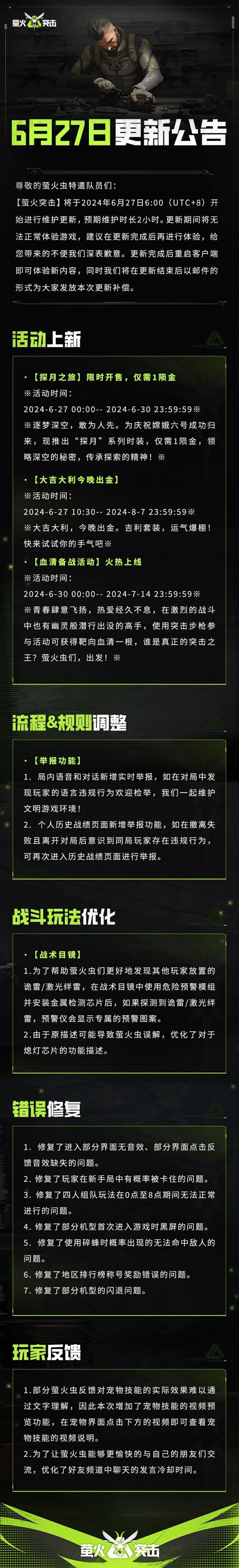 更新公告丨血清活动上线!战术目镜玩法优化,多套时装等你体验!