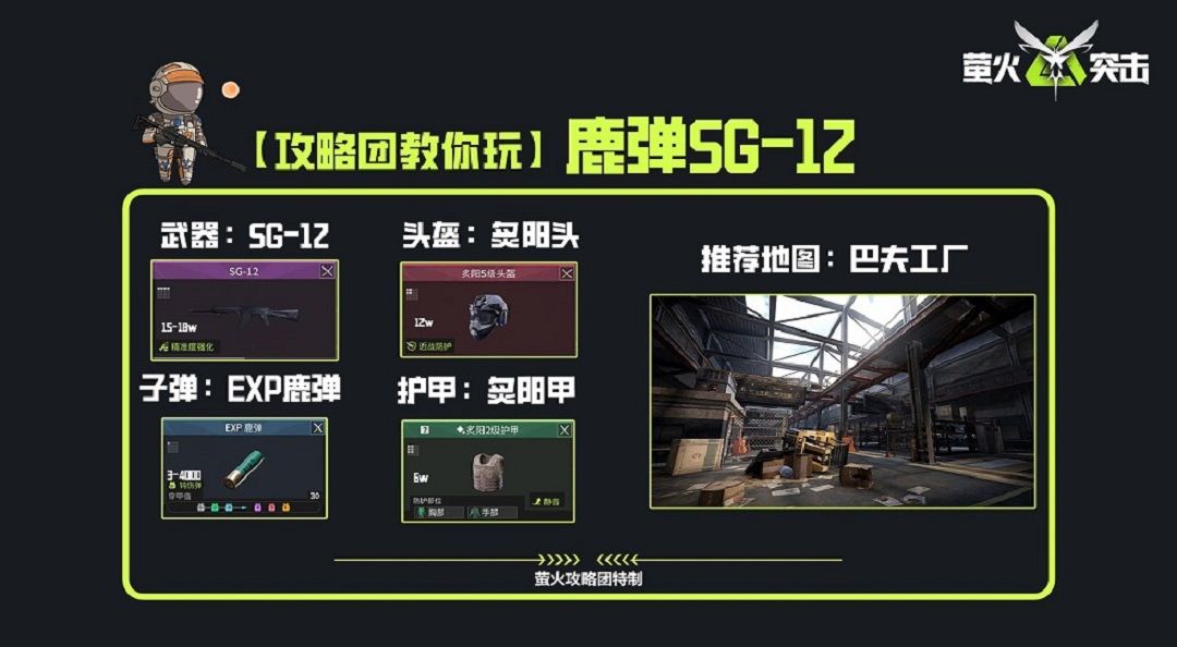 SG-12霰弹枪非常强力,近期又得到了大加强,无论是使用鹿弹还是独头弹,均在对局中非常强力,配合上手机端的辅助瞄准,无疑可以制霸工厂,本期攻略团将使用鹿弹给大家讲解SG-12玩法,玩法成本不高,却超级强力!