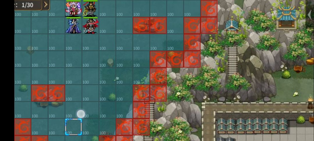 魔王2.0是1.0的延续,地图比较小,敌军定制多且都需要杀死,还都带有状态恢复无法使用混乱去控制必须一回合杀完。而友军被火隔开,随着回合推进,活动范围还会越来越小,这个难度就比1.0大的多了。先说硬性要求,右上角需要刘和8皮戴狮子盔精(白虎,恢复其余三个格子友军的状态,进内圈后负责反弹星河大佬)庞善戴狮子盔精(进内圈后负责反弹定制——机器人大佬)。由于右下角六个小兵带有高额减益能力,所以需要先