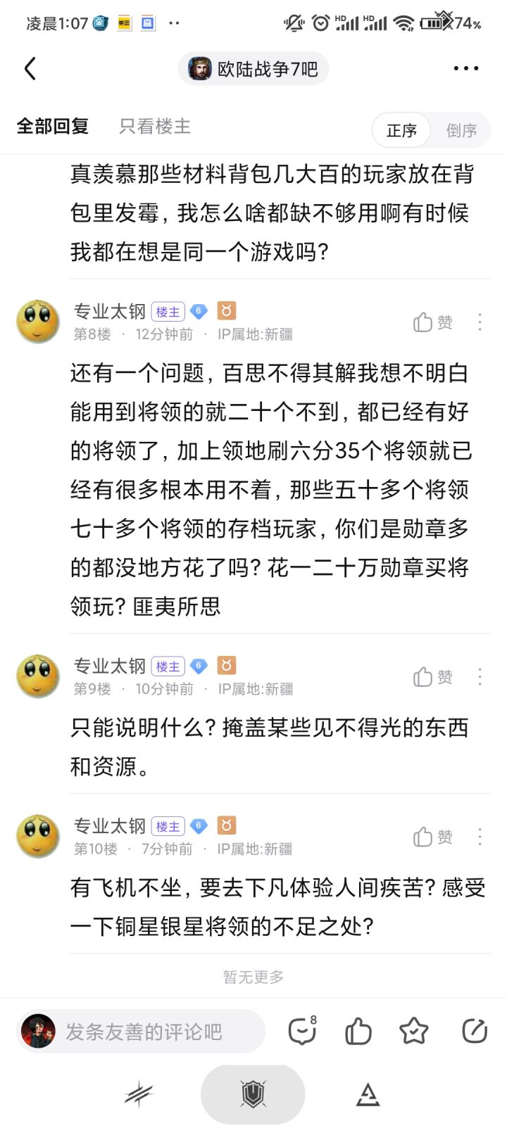 不要轻易某个企图混淆视听的人全兵种满级,兵种荣誉8w多,氪金记录拿不出来,问就是找别人要的存档,懂得都懂还在贴吧引战,污蔑有50甚至有70个将以上的玩家,怎么,收藏玩家有什么问题吗?此人在吧群和贴吧被处理符合群规吧规,不存在任何问题。我是一个非小吧或群管理的普通的群友,看不惯这人的恶劣行径特来tap解释一下,如有打扰大家敬请谅解!