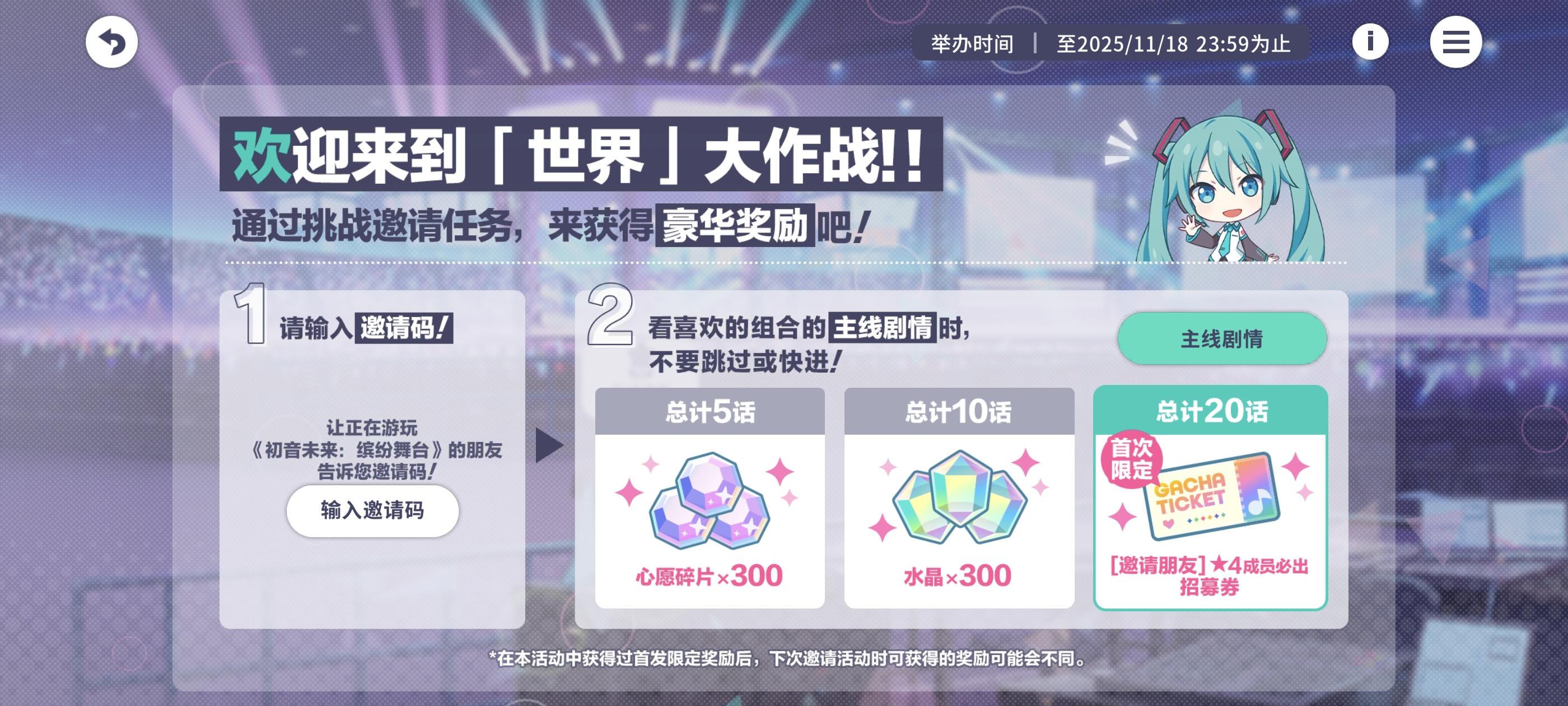 本人玩es较多来pjsk这边换换打歌手感~等一个邀请码拿奖励加不加好友都可以
