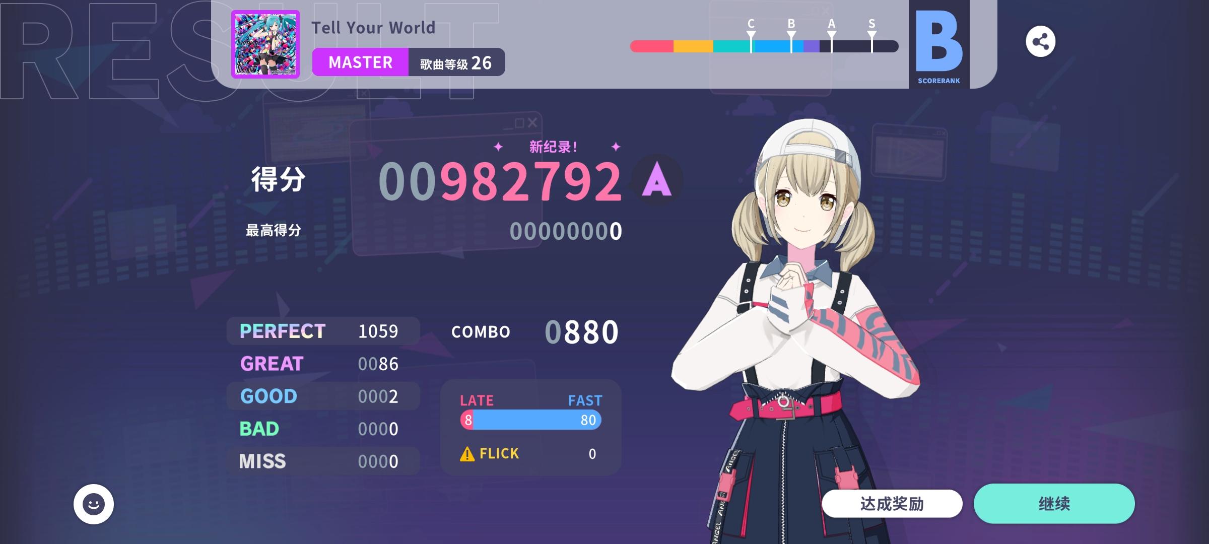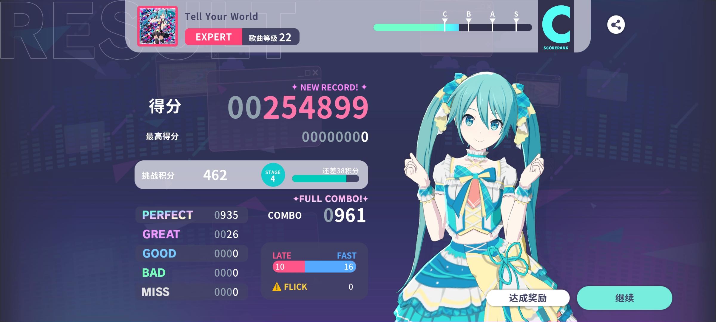 如图,能fc红谱了,然后差一点点能fc紫谱!那我是不是可以说我自己是红谱高手了?#初音未来缤纷舞台