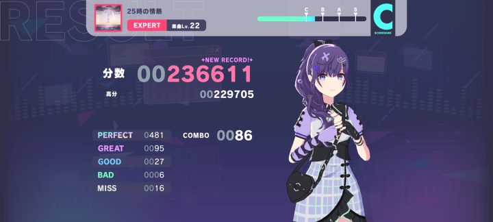 有没有玩过外服的佬帮我看看,我打好几首歌了都是c,一打到c分数加得特别慢,有没有佬帮忙解答一下谢谢了