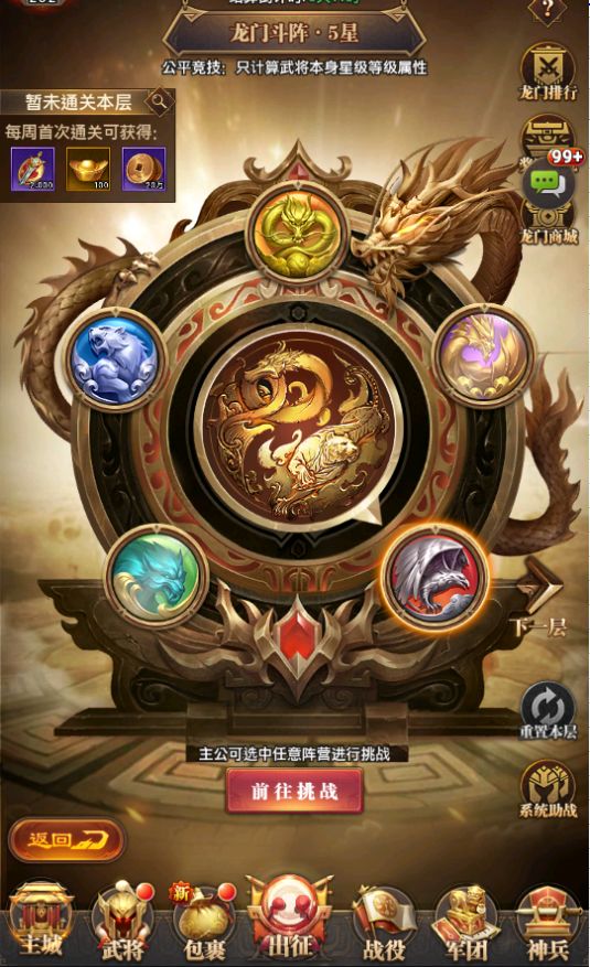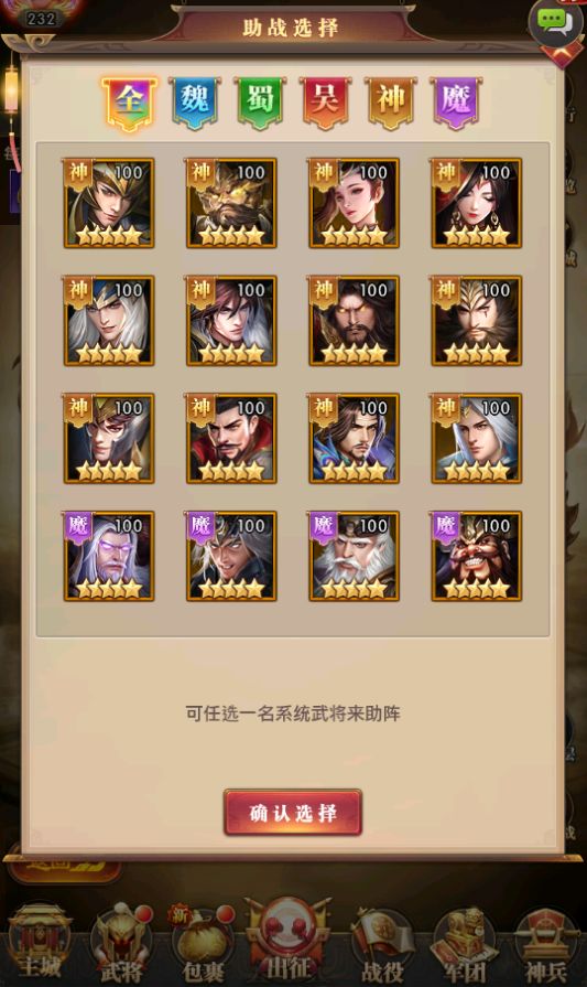 猛将甘宁(没有甘宁可以选择孙尚香等猛将,这里推荐甘宁是因为甘宁既可以收割敌方脆皮武将,又可以对镇卫武将造成额外的伤害,能较好的克制大部分阵容)