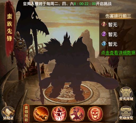 铁杆三国游戏内除了有攻城掠地、矿区争夺等让主公们激烈争夺资源的PVP活动,也有像虎牢之战和荆州之战等奖励丰厚的PVE活动。蛮夷入侵活动凭借其独特的活动机制,在PVE活动中十分突出。所以本期内容就让我们一起来详细了解一下蛮夷入侵玩法吧~玩法介绍每次蛮夷入侵活动刷新后,主公拥有2次免费的挑战机会,还可以通过消耗元宝额外获取2次挑战机会哦。活动奖励蛮夷入侵活动的奖励主要分为两个部分:1、根据