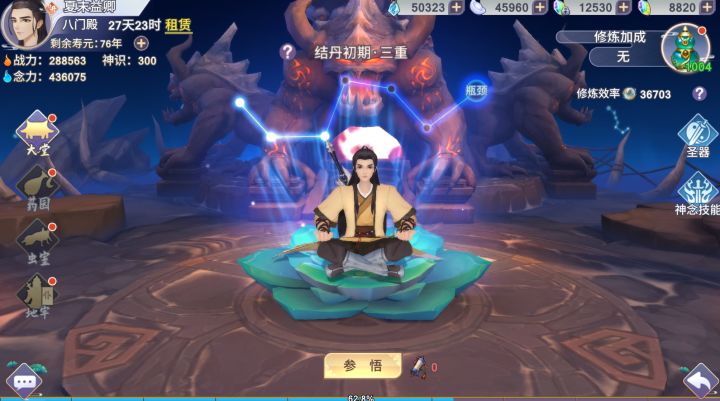 对于修仙之人来说,洞府可谓是重中之重,打坐炼丹都靠它,今天就带道友们看看百里兄自己的洞府到底长啥样。洞府大堂:首先是洞府大堂,也是用于提升等级的玩法。在洞府中可以打坐修炼,提升等级和战斗力,这也是修仙之人必不可少的技能。另外如果有修炼卷轴的话,可以立即获得60分钟的修炼经验,所以在活动中获得的修炼卷轴,记得要及时进行使用。百里兄目前的等级不算高,等到时候等级高了带你们飞。药园:作为修仙
