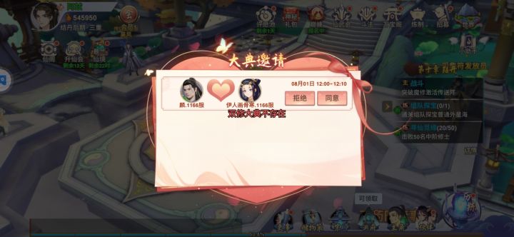 我实在是搞不懂?洞府里面的道友互动次数给吞了而且还把我的道侣系统里,为了置办大典所花费的999不绑定灵石吞了。我已经邀请了所有好友参加大典,但退出游戏再登录之后,重置了。这究竟是怎么回事?最后一个图片是我的朋友的账号显示。显示大典不存在。明显把我的东西给吞了