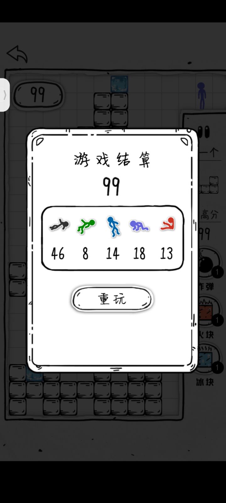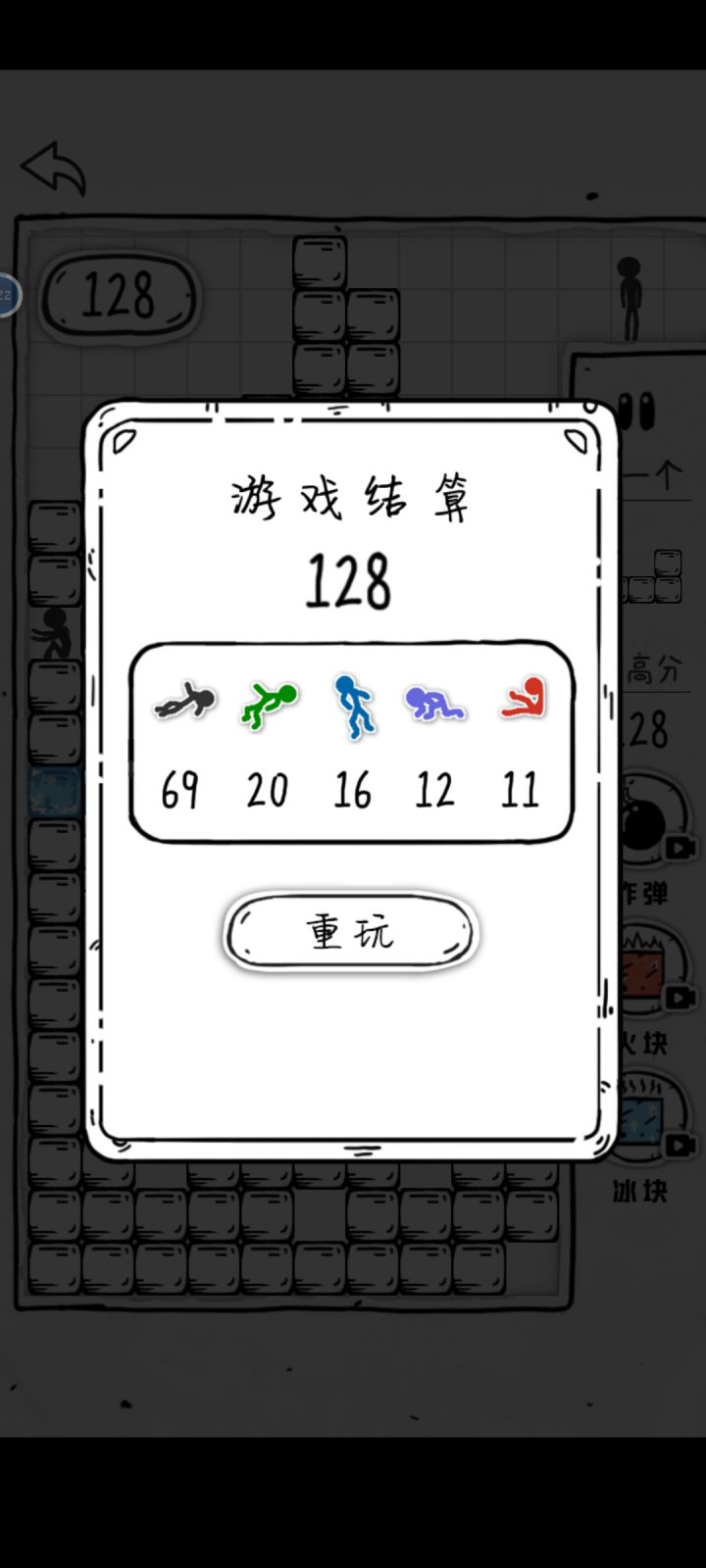 游戏画面录屏,放不上去。返回截图的时候就黑屏了,就没有放了。游戏画面就是一个蓝色的小人在站起来和蹲下来之间反复鬼畜,还有一个红色的小人刚刚跳下来,还没有落地,然后一直在晃动,还有一个紫色的小人站在地上。就这样。分数的话在50以上,具体多少忘记了。宝箱一个都没有看,因为看不了。游戏中途有暂停息屏过一次。别的没有什么特殊的。