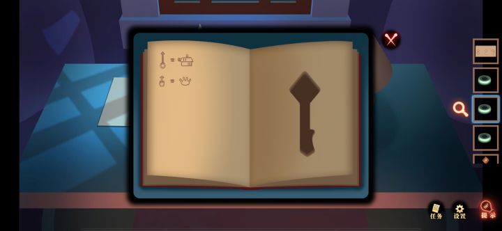 阁楼 1.从婴儿车头上拿到起子(如果你那头显示没有那就清空存档从第一话开始)发现一本书中有频道,在电视机上调到那个频道后去那频道显示的地方得到干瘪的虫子 2.从绿色的桌上的抽屉里拿到放大镜 3.在暗处点开关后完成测视力前期可以根据图显示的后期要判断点向(是左还是右,上下)拿到月形钥匙 4.用月形钥匙打开彩色玻璃窗后会看到左右俩边亮的地方回到婴儿车那点绿恐龙旁的有箱子拿到未充满月光的月光瓶,拿到彩色