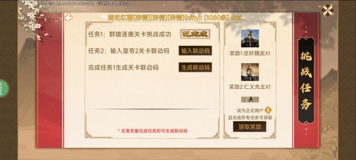 之前那个不玩了,所以再找一个,就找一个,先到先得,每天签到领东西做任务。豪杰和帝成2都玩的优先,因为是同一个账号