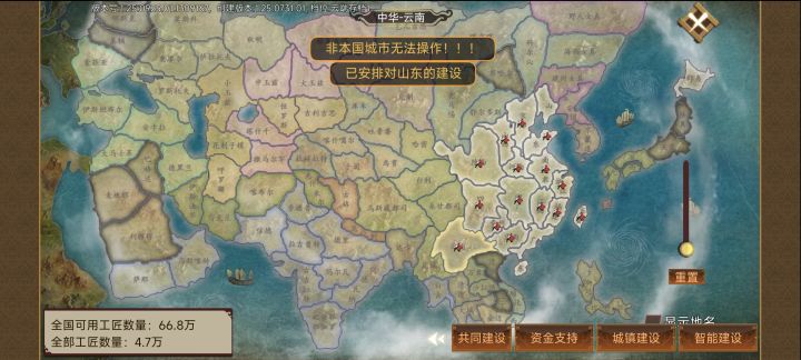 游戏ID:1309167001 云端存档1如题,巡抚线南直隶用了南面称孤之后把中原全打下来了,结果广东建设不了,对了我开了文化系统。有没有大佬帮忙反馈一下谢谢。