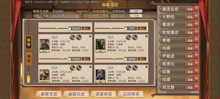 在云南参加的军营,去京都升到都指挥使后云南组建的军团不见了,军团武将也都找不到了。再次组建军团只能在福建建立,云南显示不可选择未管理的城市创建军团。现在管理三个的城市北平、山东、福建,就是没有云南。组建军团内的兵种也不能换,全都是白板民兵。云端存档1号位