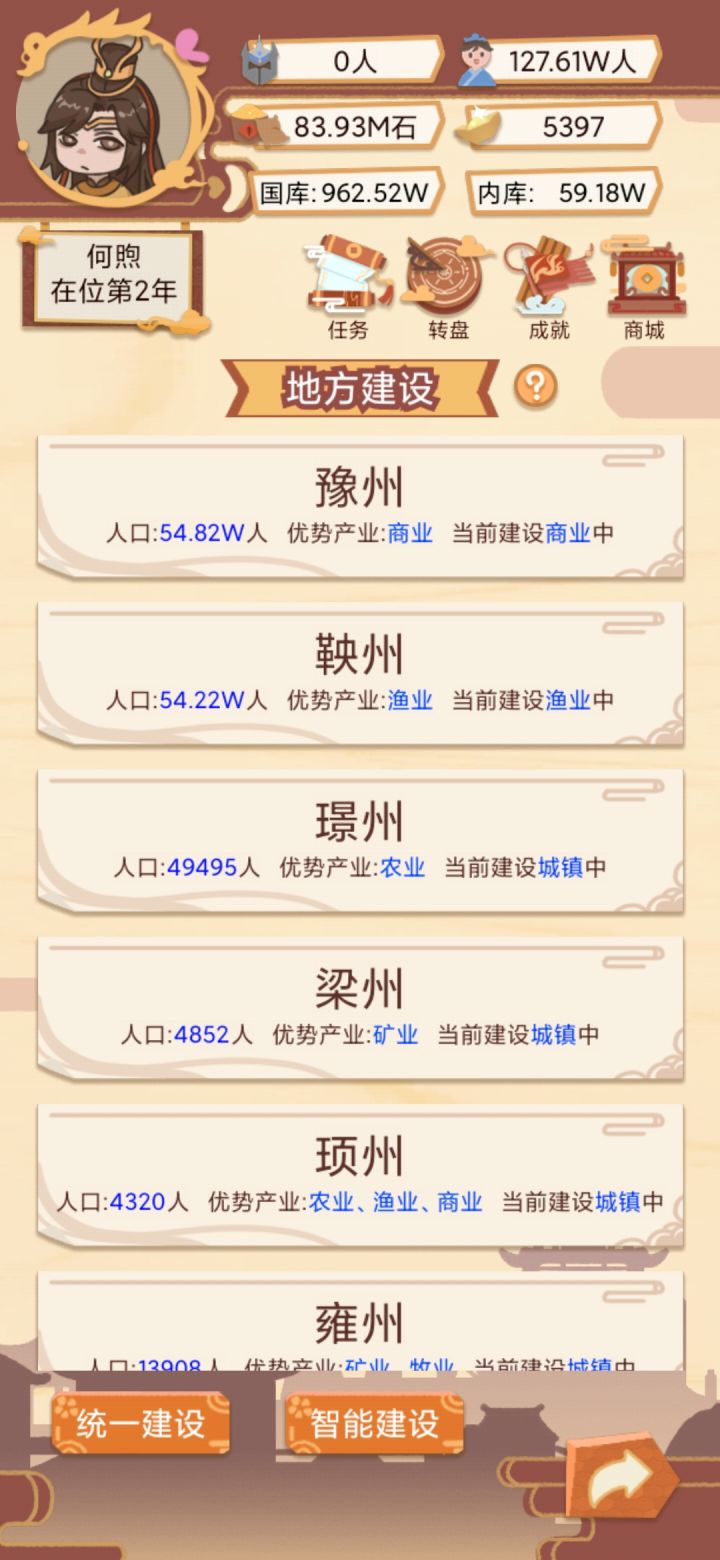 城镇建设我一直是智能建设,然后钱多了看谁人就少就去扶持一下,买一下人口哈哈哈哈。