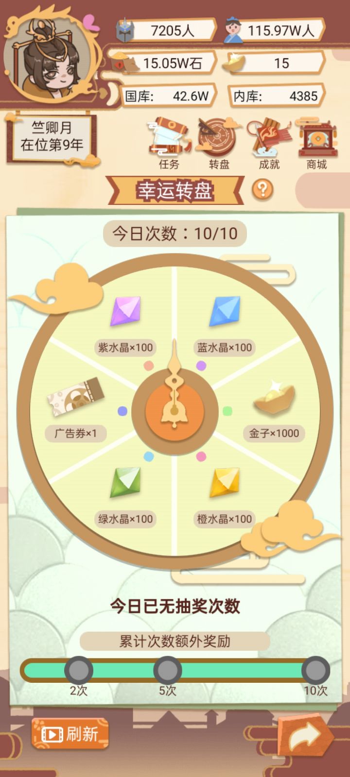 我想知道为什么我家的转盘没有每日刷新,好几天了,只有第一天转满了orztap下的客户端
