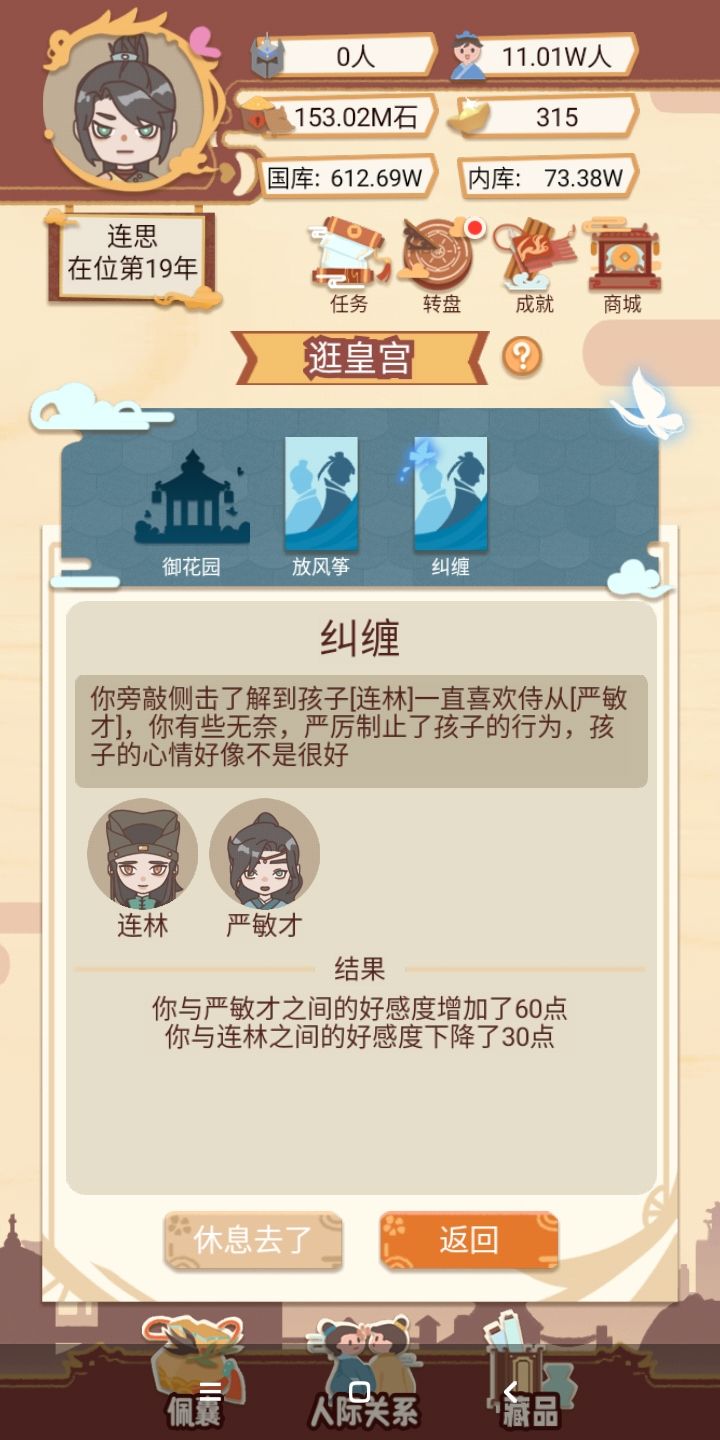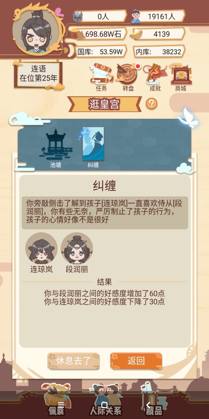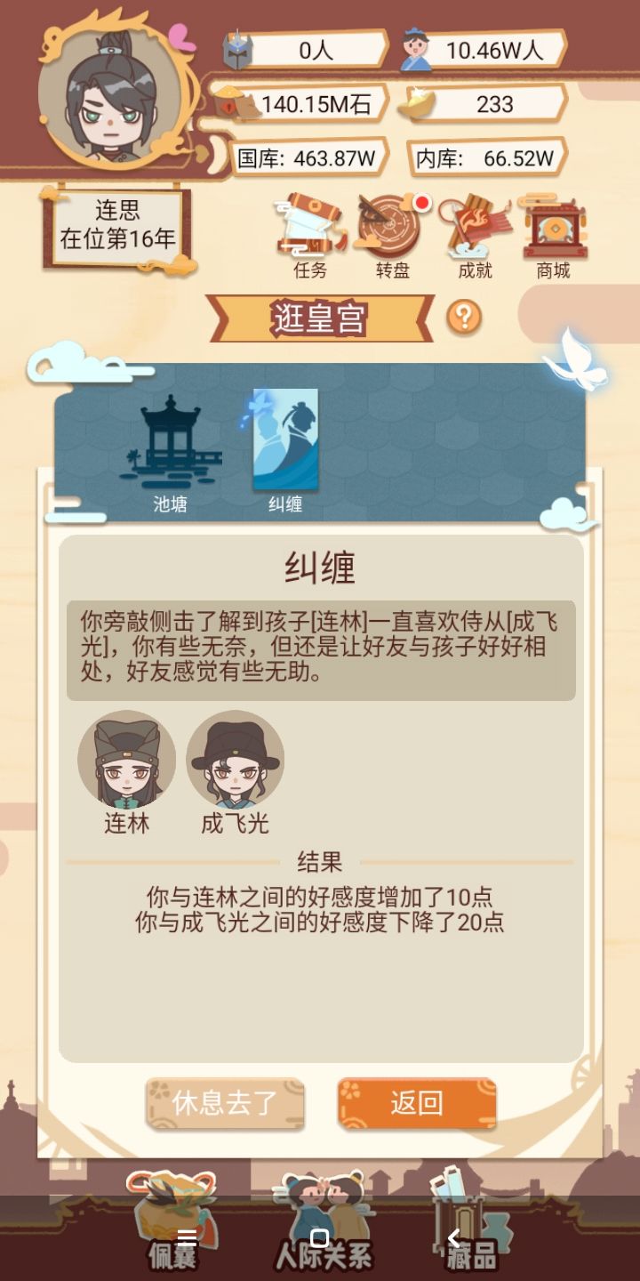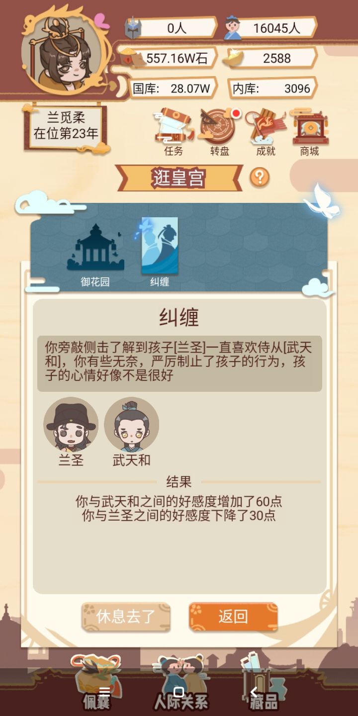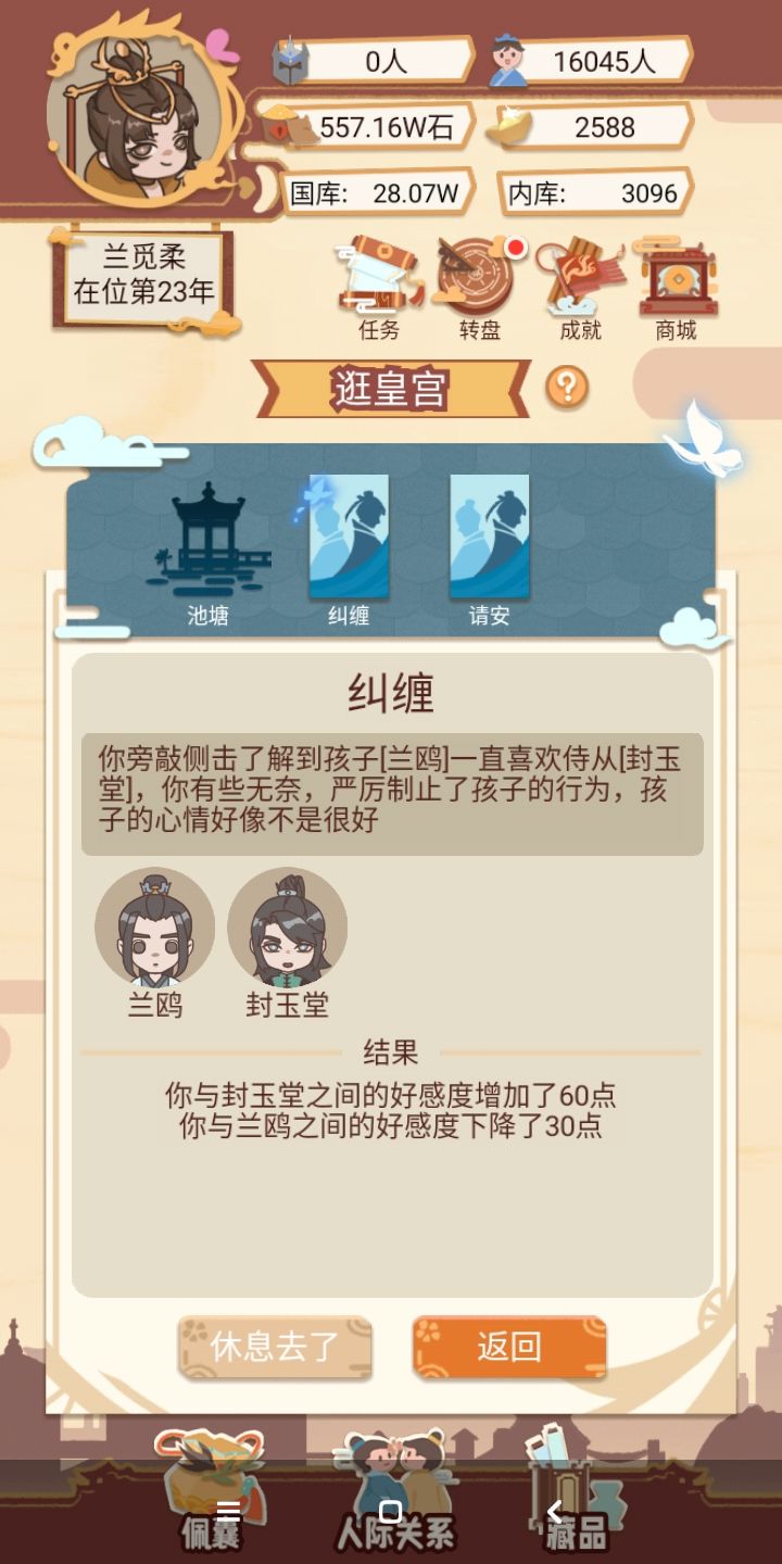 不是,这个随机的扣一边的好感度,能出一个选项,选择帮助谁吗?如果后宫再加一点事件就好了。