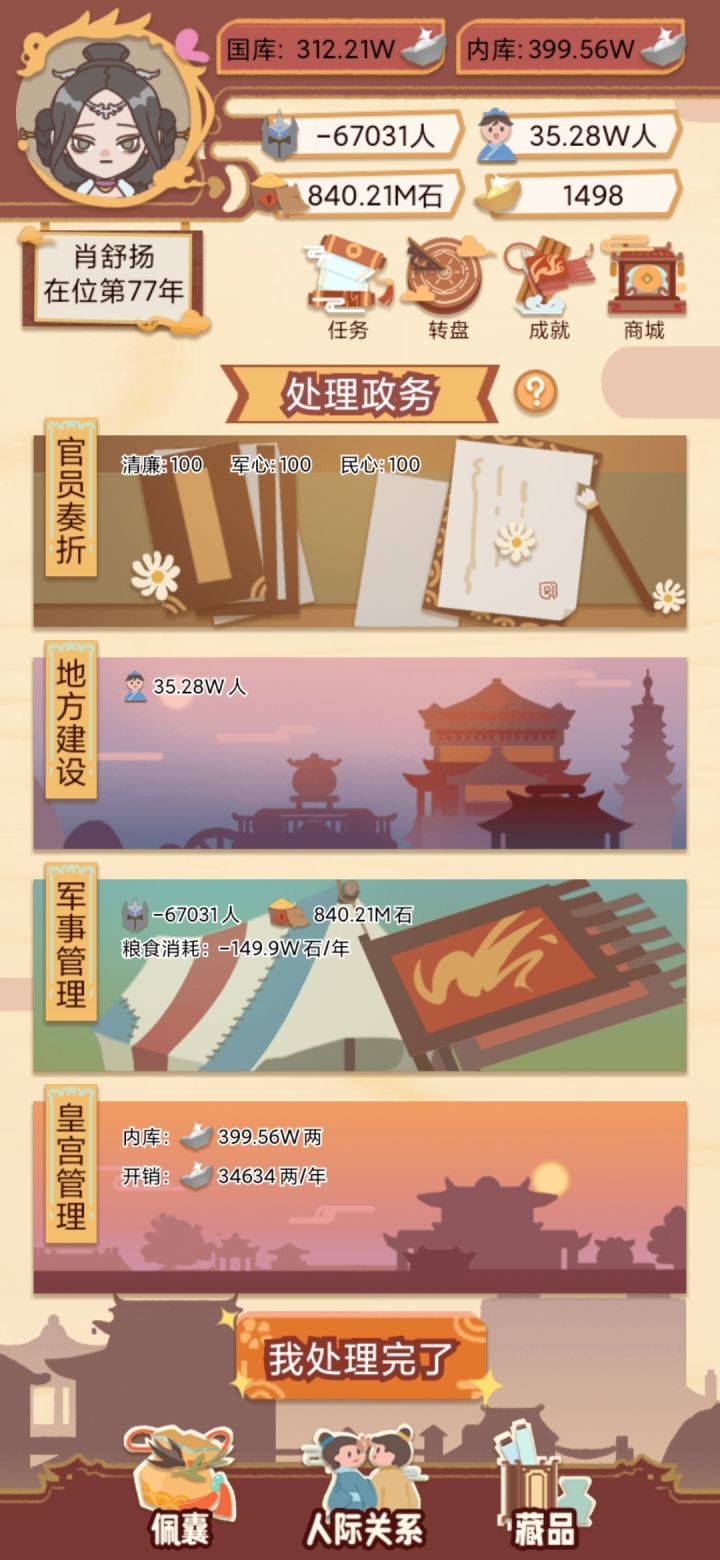 请问能不能出一个历史回顾功能,显示一下历朝历代在位期间做了什么大事,最大国库,军事实力啥的