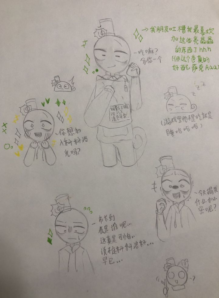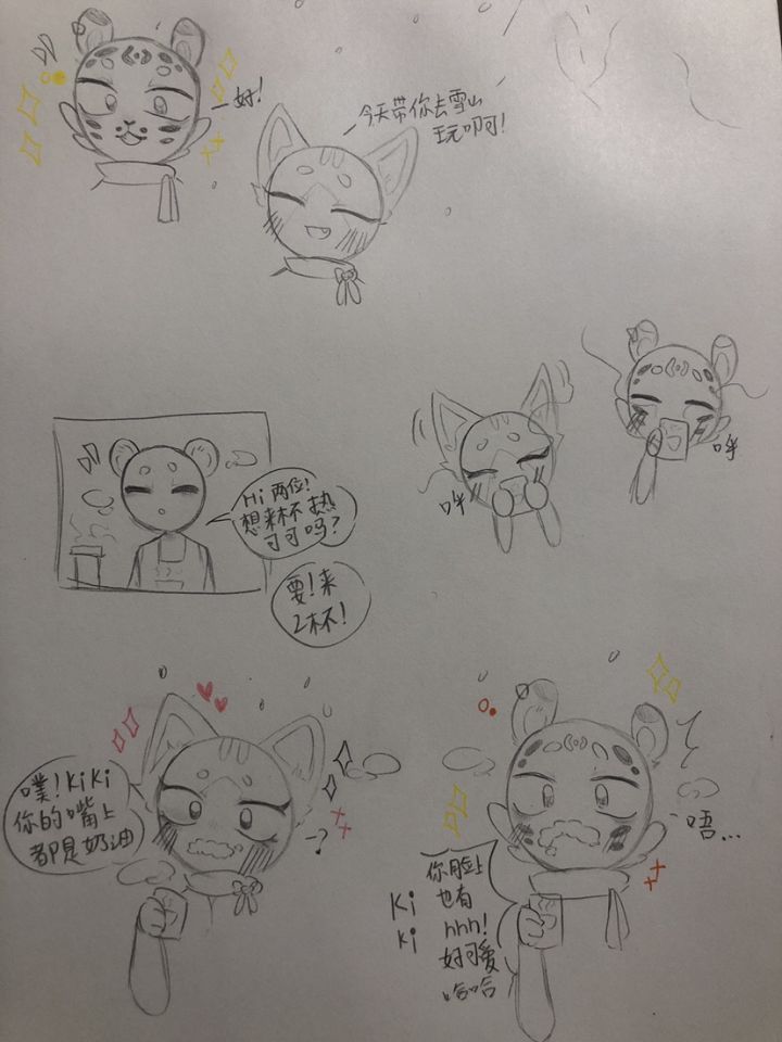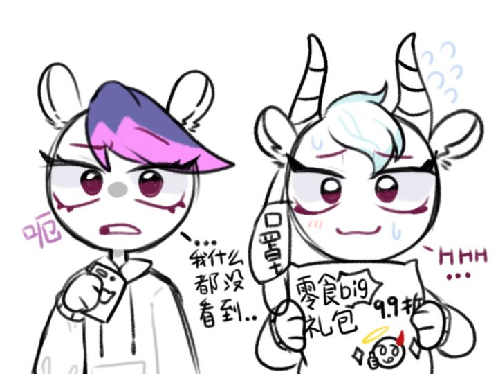 只有头发上了色,真的希望琪琪官方快点更新啊,这画讲的是吉吉戴口罩去买零食路过黛西时口罩掉了的小故事