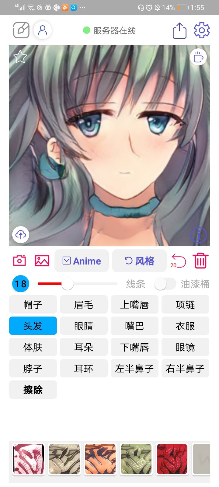 嗯。。。搞了一个,还算可以的?右半边头发不知道是啥算法,老是直接乱掉了,就这个风格还算说得过去。