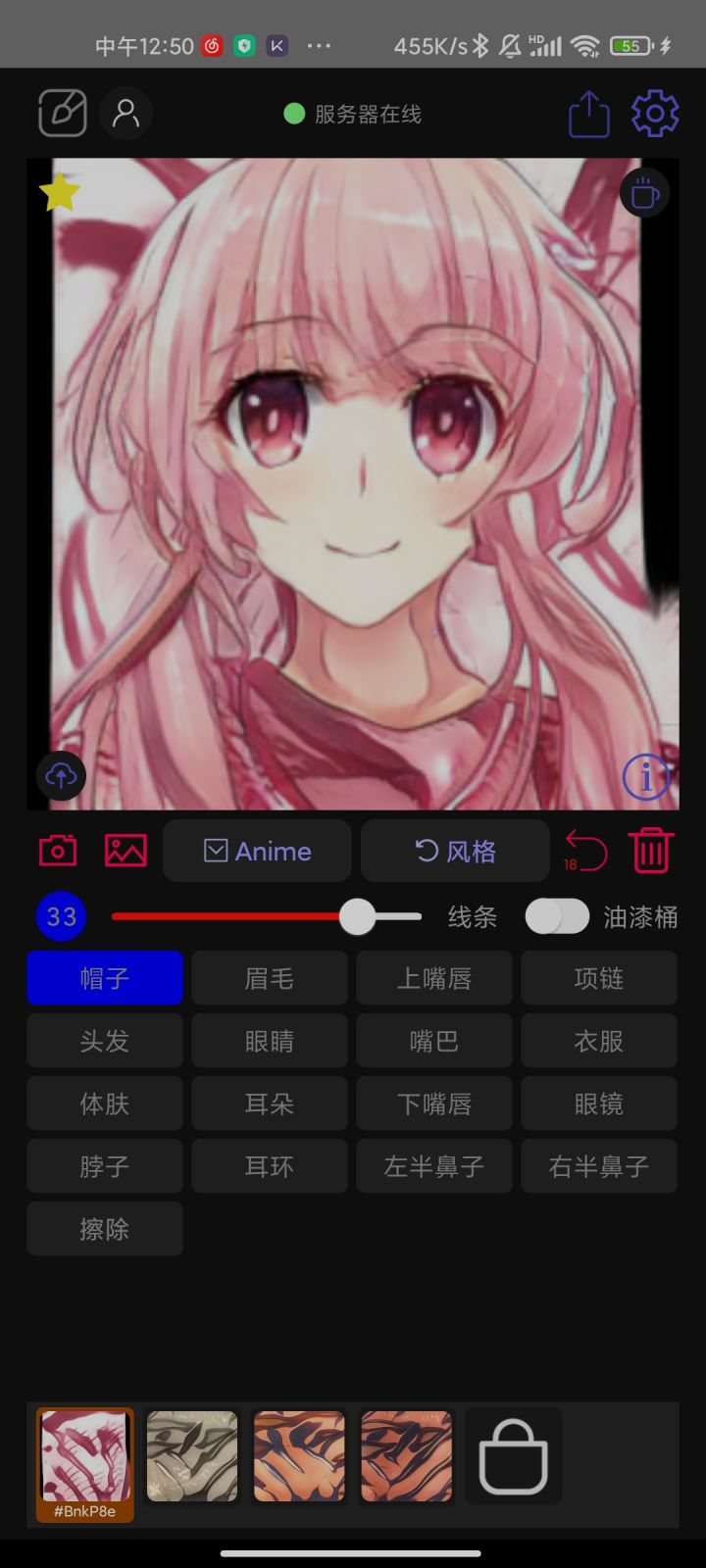 给你机会你不中用啊这个放大缩小手感好怪,能不能不要限制缩小位置,有些边缘画不到要调整好久好难受。风格好离谱,不能去掉背景嘛,我还专门画了上下嘴唇结果。。。衣服上去是没有感觉的一个字怪诶🙈