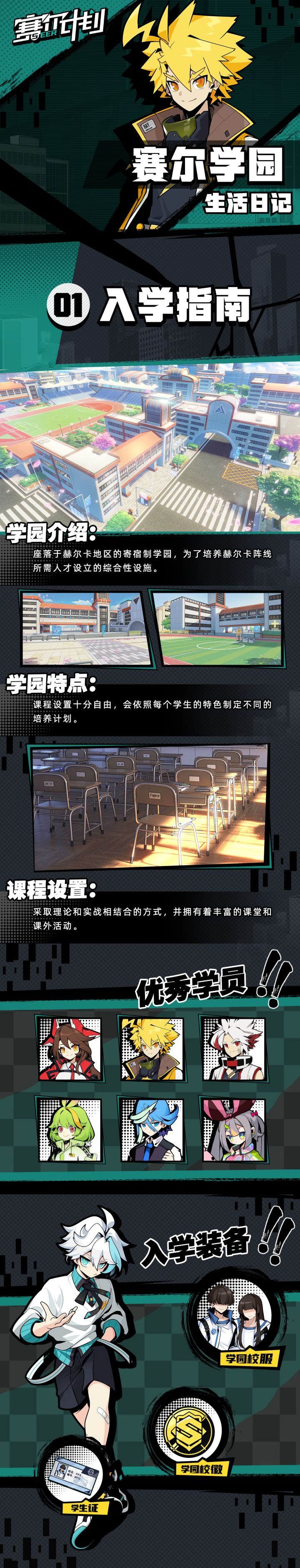 在赛尔世界中,有一个遍布大陆、无人不晓的阵线组织——【赫尔卡阵线】他们为了维护世界的安定,阻止世界崩溃的到来,一直在努力着。而赛尔学园,则是赫尔卡阵线为了选拔、培养有能力和信心守护世界的年轻人,而建立的综合性养成教育设施。每一位赛尔学园的新生,都将在这里,经历重重的考验......想必学园里的生活,大家都很好奇!!那么,文杰尔我的《赛尔学园生活日记》栏目就诞生啦~~ヽ(✿゚▽゚)ノ接下来为学