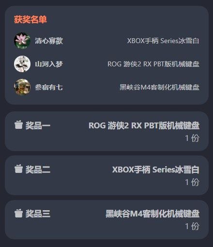 <公布本期活动的获奖名单>《赛尔计划》「龙缘万象」故事分享与讨论活动开奖啦!感谢大家的热情参与!!让我们恭喜以下获奖的顾问们!(鼓掌!~(‾⌣‾~)【领取方式】请以上玩家及时在开奖页面填写邮寄地址~我们会尽快核实并发出奖品~领奖截止日期为:2024年3月15日18:00前逾期未领取视为放弃本次活动奖励,请各位玩家及时联系官方领取~没有获奖的顾问们不要灰心!后续还有更多活动内容发布,请