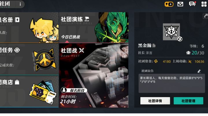 高战高活跃社团即将7级,必须参加社团战,有QQ群,进来加群,铂金以上段位进