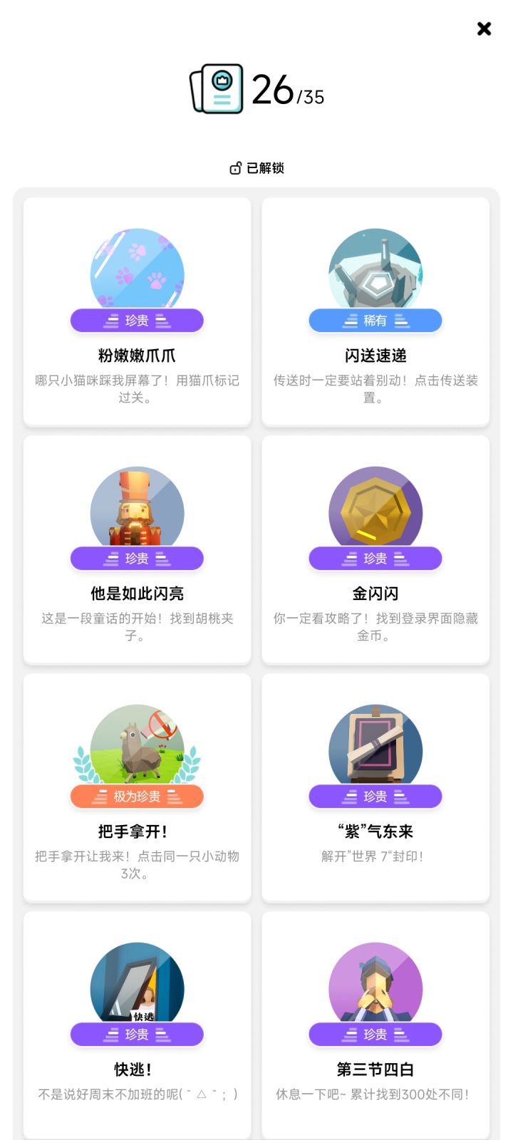 在大佬的提示下终于把隐藏成就都完成了