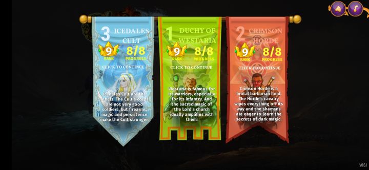 Takeover这个游戏应该已经算是通关了吧?种族:DUCHY OF WESTERIA(绿色)特色:BANNER OF CONSECRATION:回复旗帜,持续回复Unit(单位)血量SIGN OF THE ADVENT:技能,在战场上(某一个建筑前面,一般是Magic Tower(魔法塔))施放一个Lord's Avatar(巨人),攻击力强但移速慢,没有MANA(圣水)及GOLD