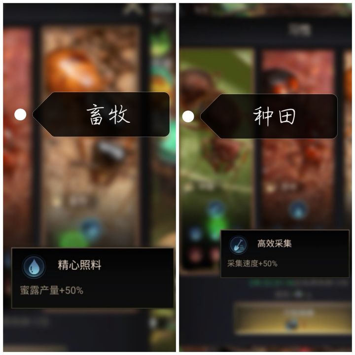 在前面提到了习性建筑可以共存且发挥被动加成,这里再提一点 关于习性的较优选择第一次习性建议:t0畜牧/t1种田/大傻子 掠劫理由:作为战略性资源,蜜露不可运输也不可快收,蜜露的产量仅以技能们和蚜虫数量,工蚁数量相关。而在商店之前,会特别缺;蜜露的足量供应,与前期建筑的低资源需求能让你迅速发展若不缺蜜露(快速开出商店)可以选择种地,不过可能会导致长期的被动囤蜜对了,别忘了看看畜牧特殊商店