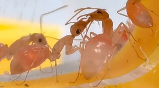 你为蚂蚁只有红黄黑吗?其实我们还有彩色的小伙伴哦♪٩(´ᵕ`๑)۶⁾⁾ 今天就跟随我们的蚂蚁UP主:@爬来爬趣 一起来见识一下我们蚂蚁届的小甜心——蜜罐蚁的彩色日常叭ヽ(○´∀`)ノ