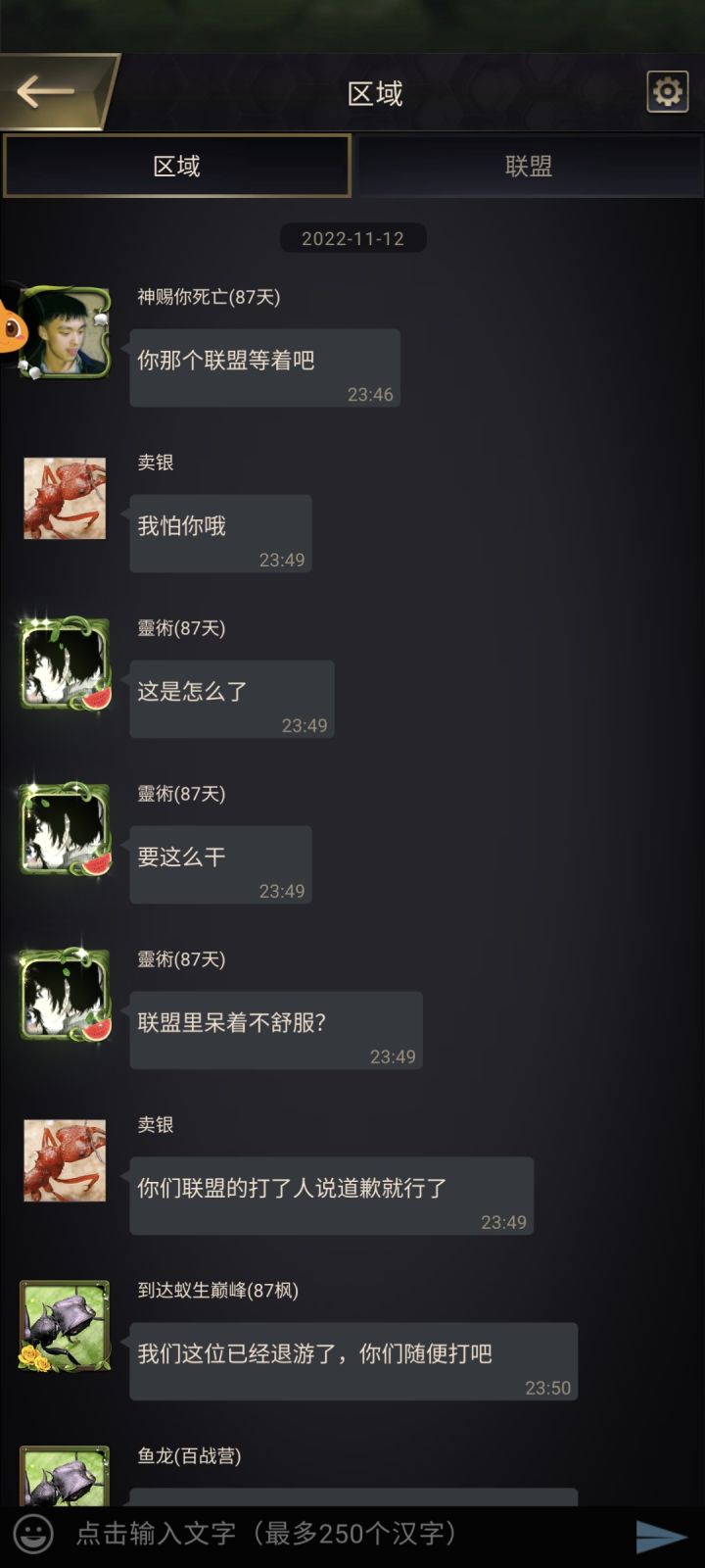 2,图二是87区所谓的联合盟,所有不带87开头都是敌人,但是问题来了 为什么这么多盟一的人打了87同盟其他盟的人,道个歉就完事了?这不是一例