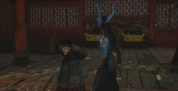 从普元寺刚解锁的正门捷径出门沿着箭头直走向前。回到刚才的三叉路,中偏右方向走到底有个手持门板的怪物,可以背后蓄力重击偷掉半管血,击败后拾取先神之言【未·须羽·流派强攻*1】右侧则是解锁蜀王祠二楼捷径的路线,一路向上,先干掉两个在聊天的和尚获得【羽珠】到达顶部后前方有两条路线,一条是沿着直走,一条是右转进入房屋中间的院子。我们先走院子,院中会有敌人伏击,需要小心,可以先迅速把右边的小怪杀了,