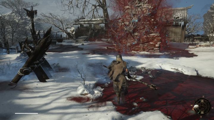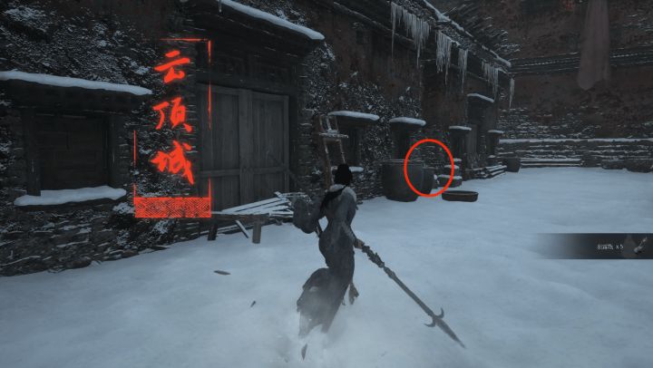 拜命云顶外城神龛后回头可以看到一个巨大的石塔被藤蔓缠绕,树枝散发着红色的烟雾,注意石柱周围的雪地有许多地雷陷阱,靠近石柱会从下方血池处源源不断刷新会飞扑自爆的敌人,如果想清除这些红色烟雾让石塔不刷敌人我们可以羽渡到大西军营地走下山坡道(路上很多地雷陷阱)。击败BOSS定北将军·艾能奇可以使这些红色烟雾和缠绕的树枝消失,怪物也不会一直刷新,大大减轻我们探索压力。或者顺着石塔上方绳子位置寻找哨塔,哨塔