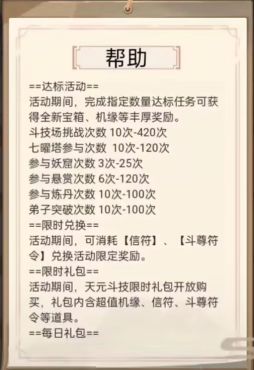 哈喽,各位道友朋友们大家好。本期小编说说此次天元斗技大会以及下周轮回神殿内容,早备早好,有感兴趣的小伙伴就跟着小编一起来看看吧。本文首发【道天营地】公众号,未经授权禁止“抄袭文章”转载至其它平台。• 斗技大会与轮回神殿•第五赛季天元斗技大会达标任务如下:斗技场挑战次数为10-420次;七曜塔参与次数为10-120次;妖窟参与次数为3-25次;悬赏任务参与次数为6-120次;炼丹参与