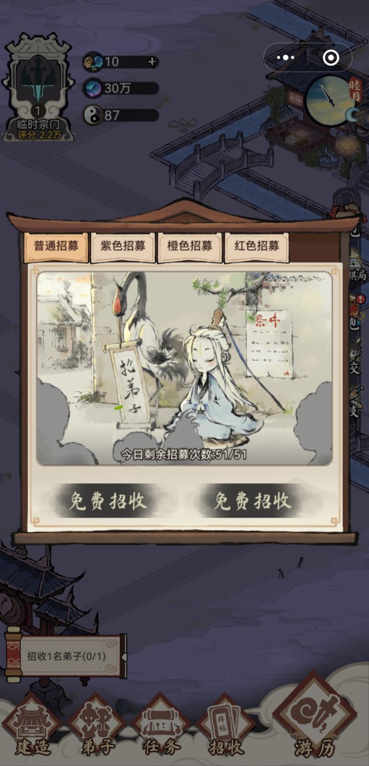 玩了几天说一下自己看到的一些有问题的地方1.每次上线一堆人挤在主殿后面,因为我主殿后面有一个格子的空位一堆人挤在那但是我也没有修建道路2.钱不够啊主殿4升5要60左右的金币啊我出了炼丹,炼器,升级建筑其他也没用的地方估计光主殿升5级就要被卡住3.驻派的地方希望能加上弟子的名字而且还要可以查看人物详情我总要看看他的根神悟来决定要不要驻派吧