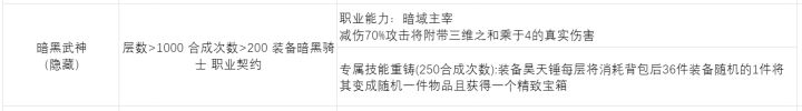 10000层✔,7装4宠✔,成就〔开挂了〕✔〔人皇在世〕✔2024.1.27 开的帖,2.10 摸索着过了万层,几个成就都拿到了,分享一下攻略,我也是第一次,内容仅供参考。【转职目标】暗黑神王:初始职业武器大师,二转职业专属拥有7装备(游戏唯一最多),荒古龙爵:二转种族专属伙伴〔龙族守护喵的英灵〕,合成次数800和1800次,分别+1伙伴位置【相关成就】〔人皇在世〕装备7把轩辕剑(暗黑
