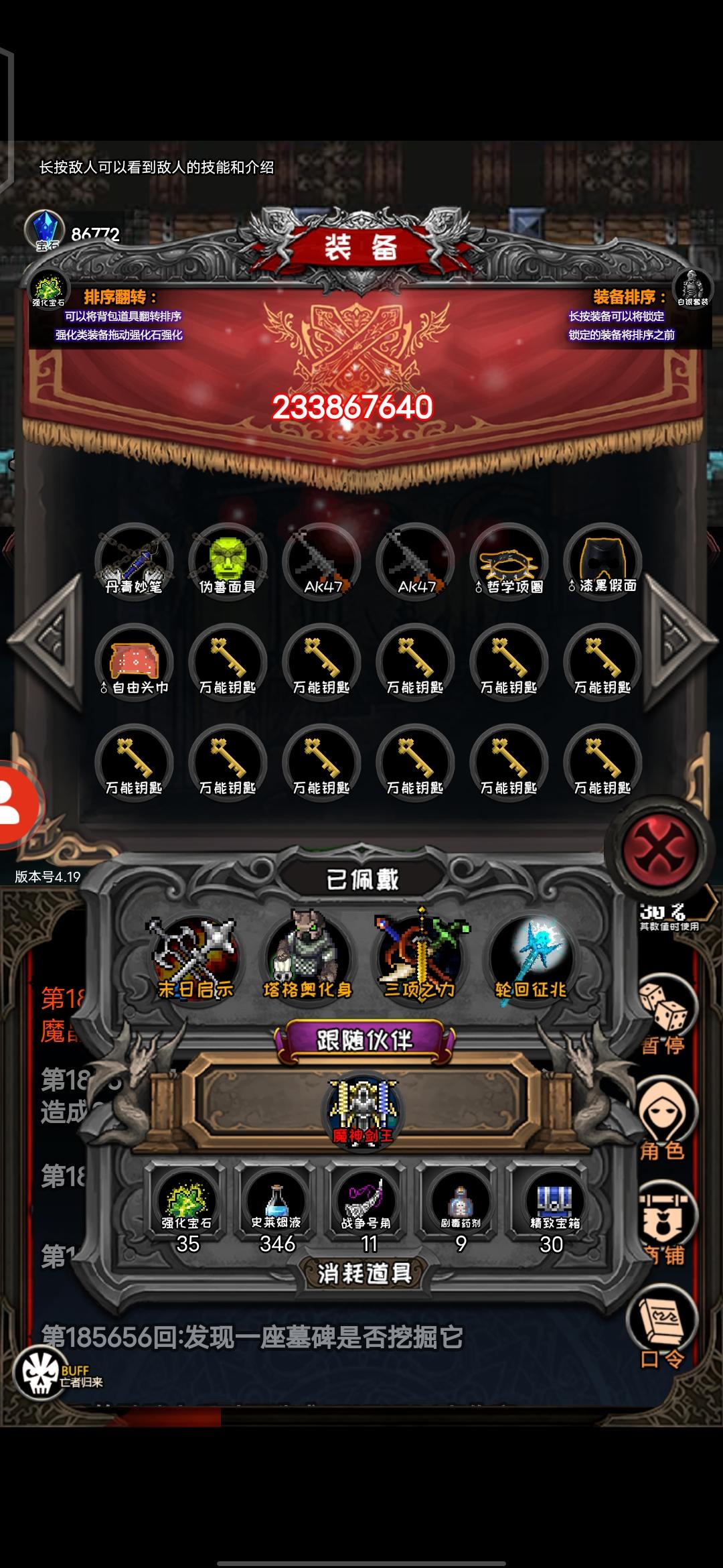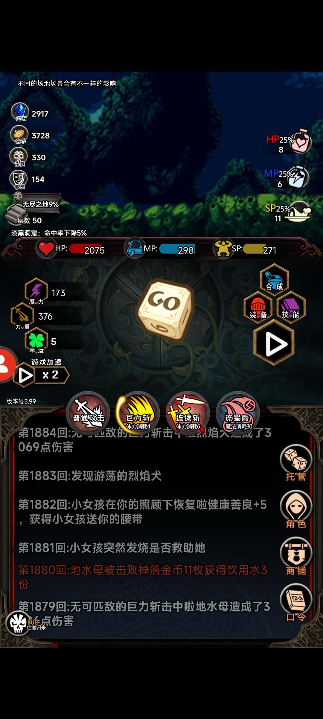 炼狱难度逃跑流,每次战斗除了楼层boss之外不能逃跑,其余目前每个怪的逃跑成功率都有95%😏逃跑成功加的五维挺多的自己看吧