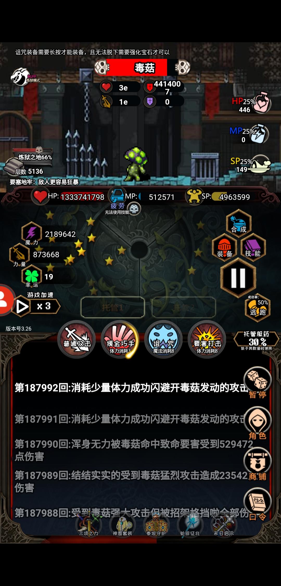 附上装备合成图鉴,不过这个图鉴有点过时了,新版本部分装备没有。恶魔果实,+10%力量,没啥用,不如魔力,力量属性太low,前期加不了多少,后期不差这冥想药剂+10%魔力的,这个图鉴上没有,价值不错,藏宝图2个跟魔力有关,很多可成长性的装备也是加魔力的。史莱姆液,杀史莱姆给,3维(血魔体)随机一个加5。有就用美味面包,回复全部体力并+5上限。前期看情况,后期有就用。贵族长笛,打中降20%命