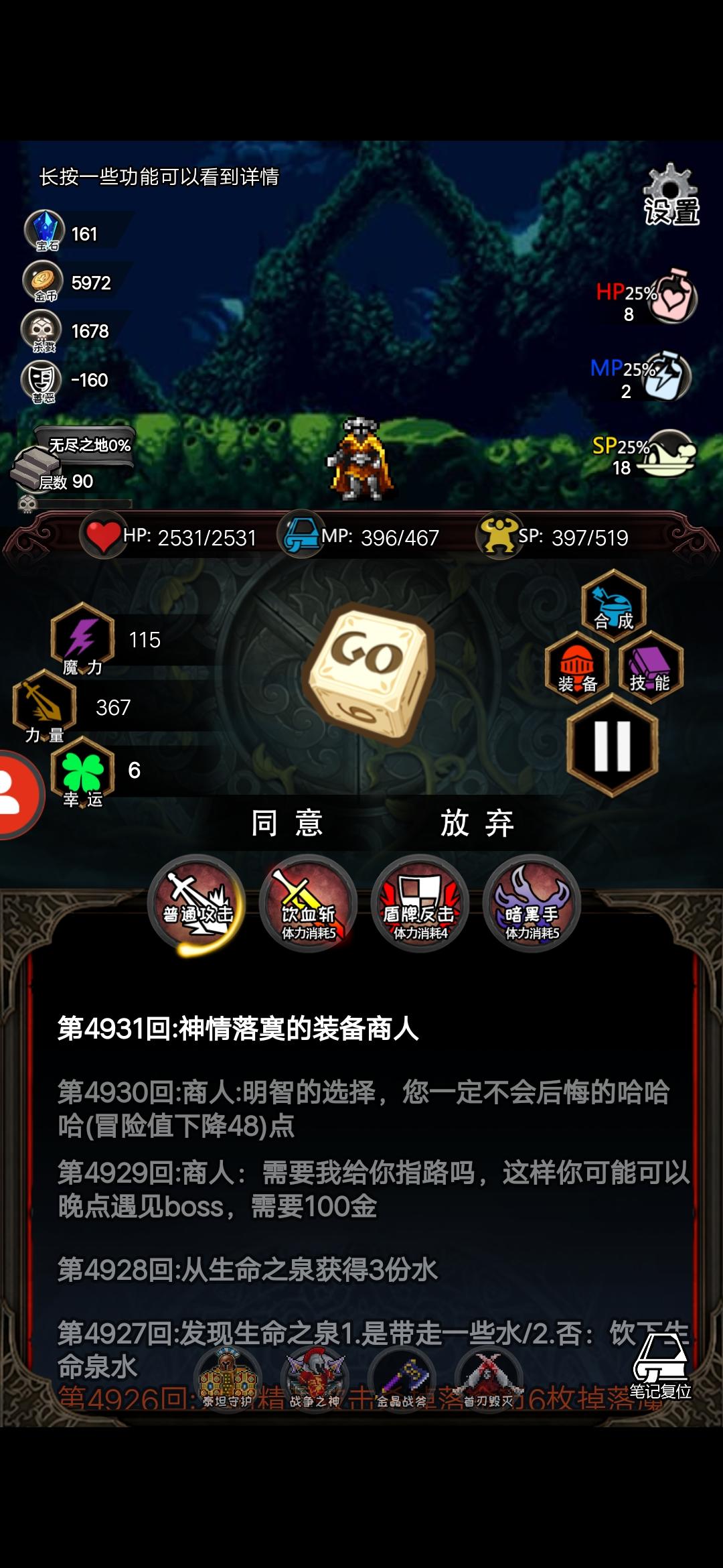 无限回合攻略快乐书或者自然人快乐书减攻击力到0,注意自动回血(20层后有个九头蛇被动)自然人减攻击到0小怪打不死人,你打不死小怪(先不学魔法武装)无限回合无限刷属性种族亡灵 不是亡灵带上回血装备(进化绿鞋子 神光剑圣 攻击减到0)不想叠加的时候,用魔法攻击过层