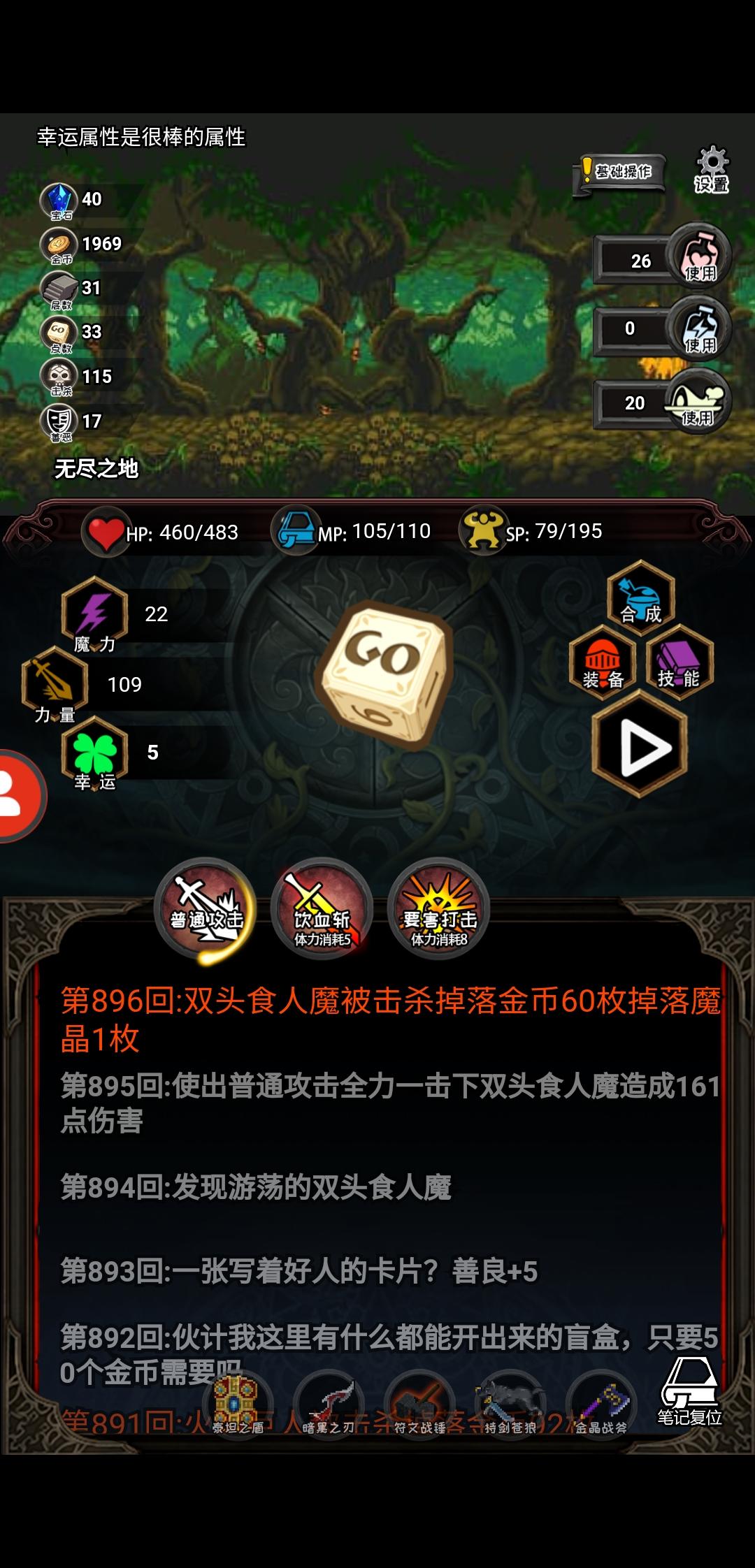 第一次玩战士就通关挺离谱的,之前玩法师玩了四五个小时左右,看提示说装备可以合成,我不知道怎么合成。战士带着刚出门的两件套带个被遗忘的那个盾牌还有个白银鞋子就过了。