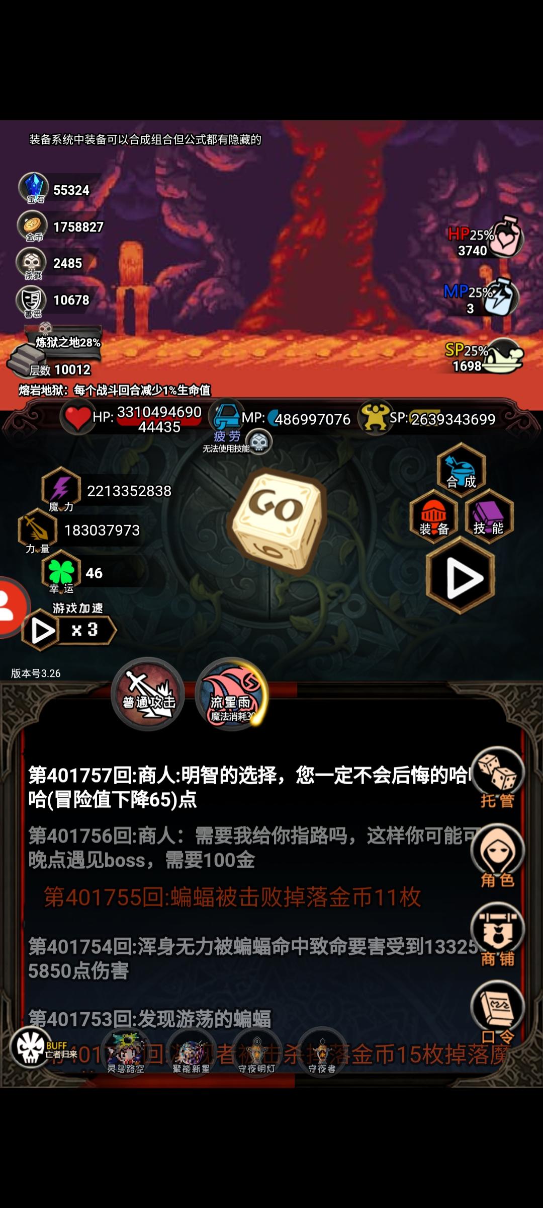早上遇到了这个bug,下午又有了 !我就下线了一会儿 !层木放给我砍掉了,力量也给我砍掉了!魔力给我砍了!幸运值也给我砍了 !干脆叫bug日记得了 游戏虽然好玩,但BUG我是真的烦!求官方修复bug !!
