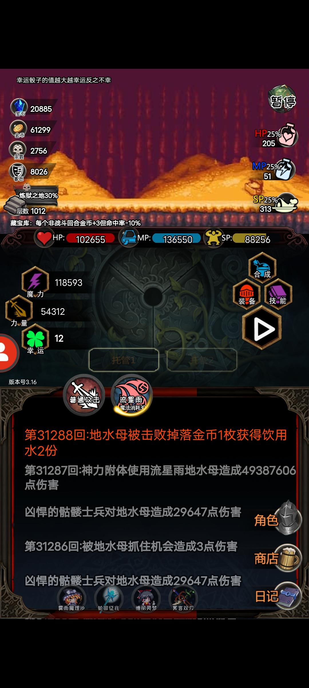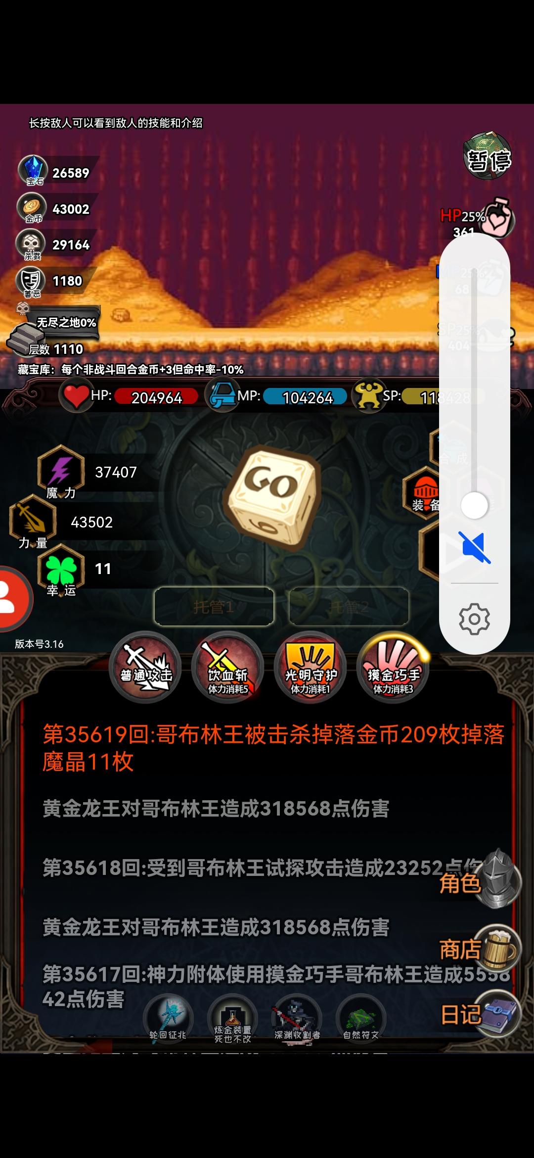 玩了700分钟来评价一下,建议搞个1.体力值没了提醒功能,老是在一边刷突然体力值没了,两下人死了2.血量低于30%或者敌人一刀打你50%提醒功能3.自动磕药功能