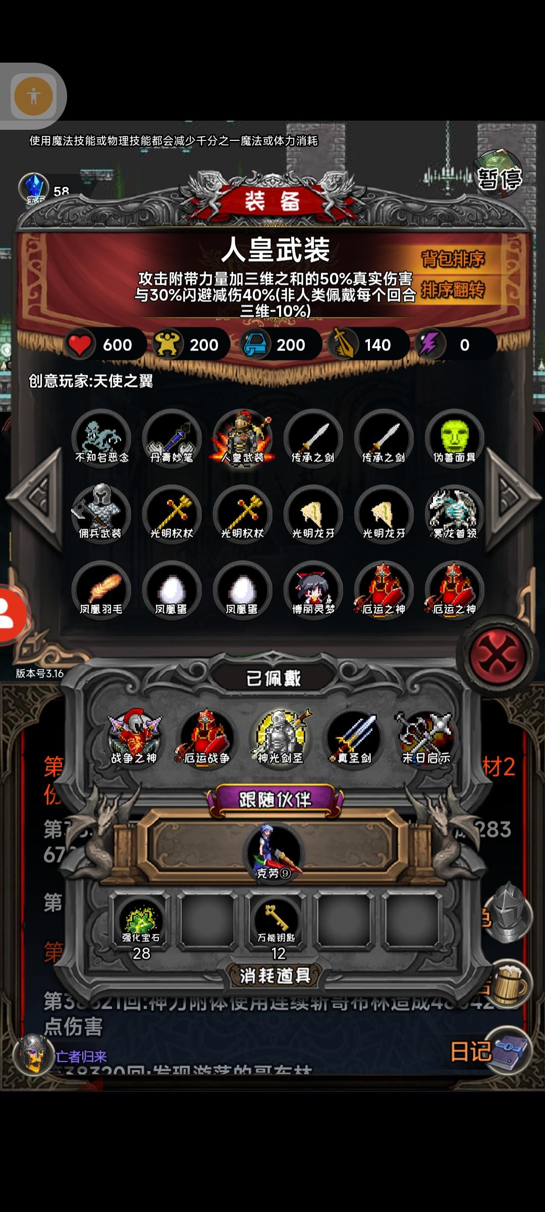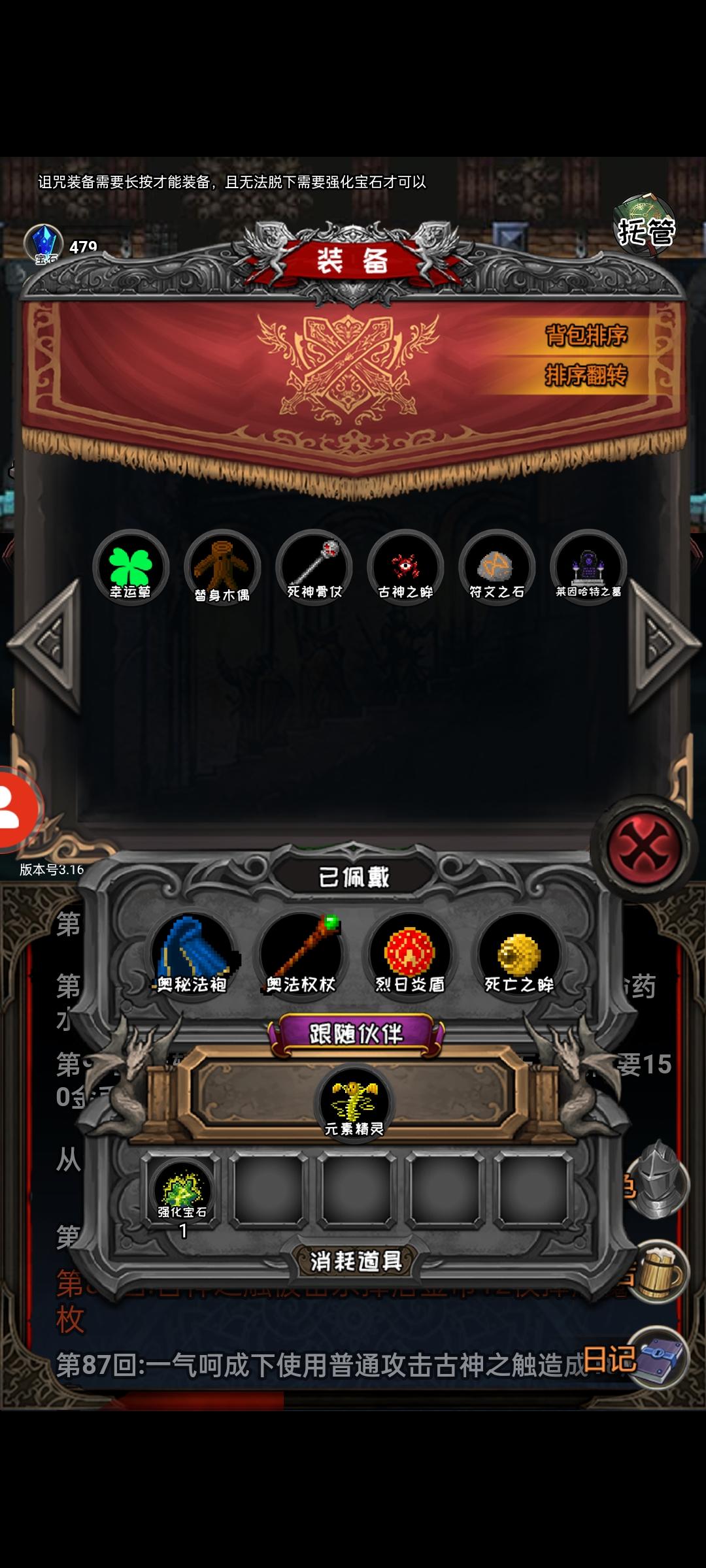 出行bug了,刚开了把法师发现力量怎么这么高,打开背包一看居然还有上把留下的宝石