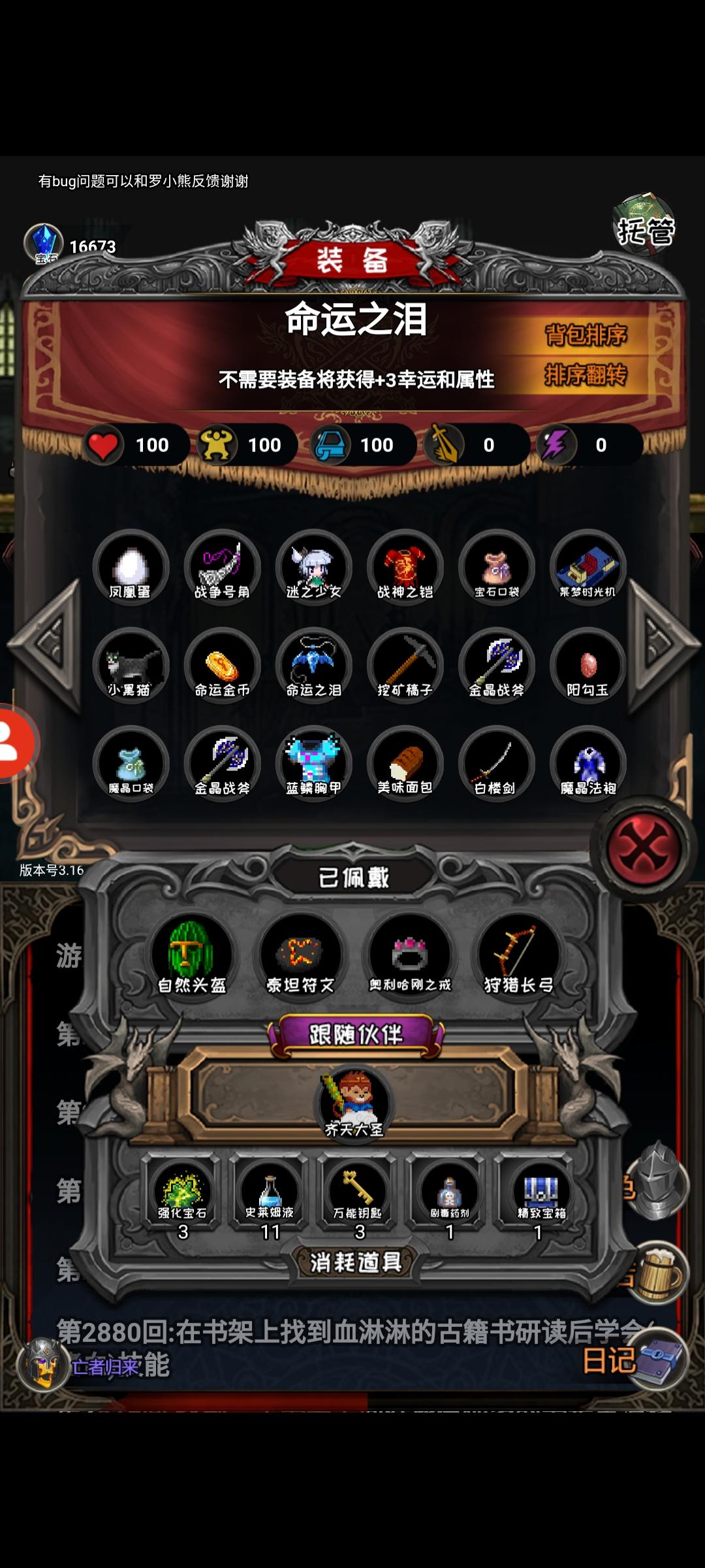不用装备的命运之泪加的属性下线再在上线没有了。没下线之前是幸运八,下线之后再回来就是幸运5(后来用了卷轴加了幸运1)