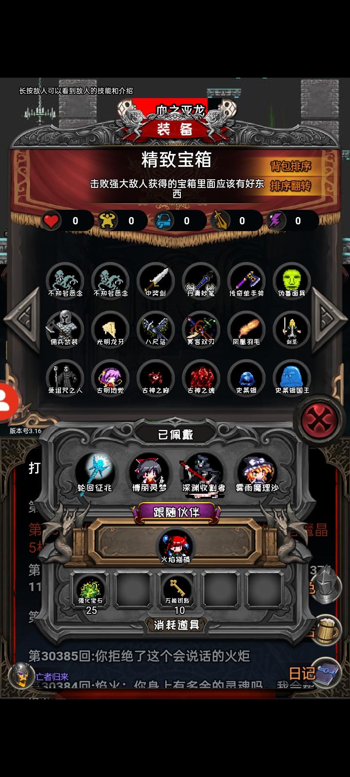 300层到400层转职恋恋完成没找到魔理沙的炉子,灵梦的玉差一个阳玉,阿莱斯特差一个召唤阵,到后面箱子跟商店概率太低了,没什么好的体验