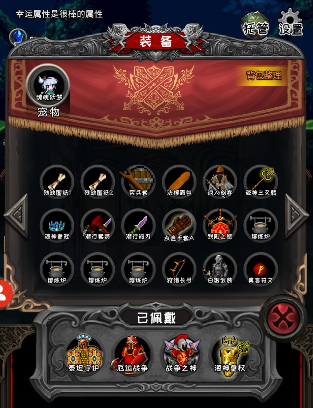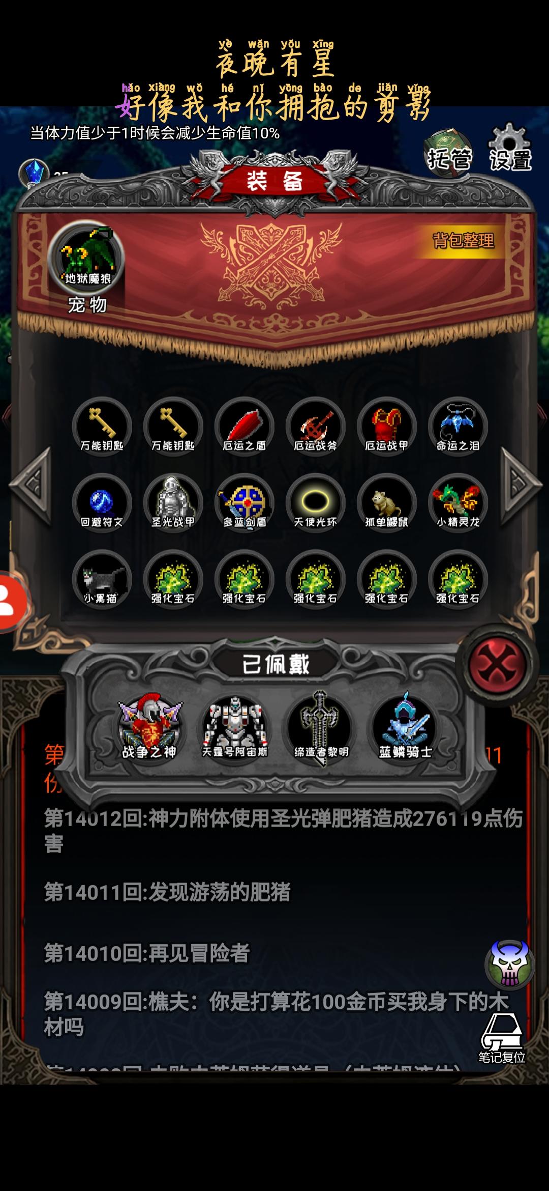策劃是真的可以,更新前發帖,100層以後都沒有裝備了,說已經採納意見,後面就一直沒有玩。昨天剛更新,發现兩三百層以後都有裝備了,雖然說概率很低,但好歹還是能把之前的散裝能湊齊了,現在最開心的就是遇到商人了,合套裝是真的很爽