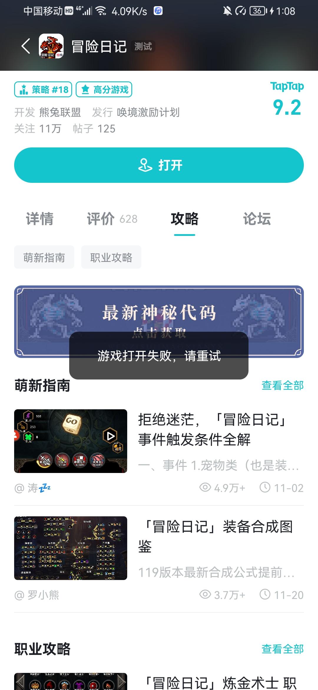 为什么打开游戏失败啊