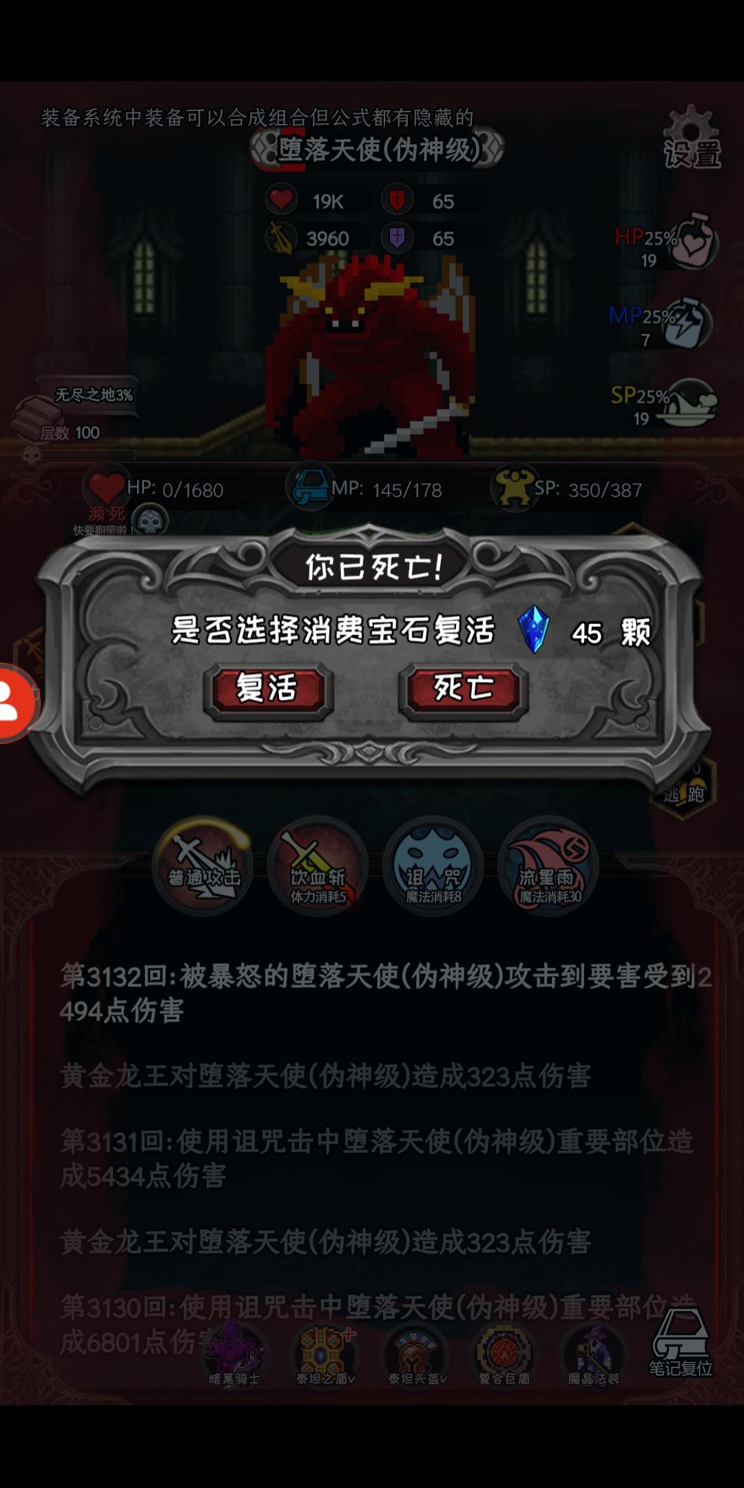 100层以后就不出装了?不出装我已经干不动了,呜呜…还有建议可以增加一个自动用血瓶蓝瓶的机制,不然有时候开自动战斗反应不过来加血加蓝然后就挂了(我的替身白白被一个小兵费了淦!)