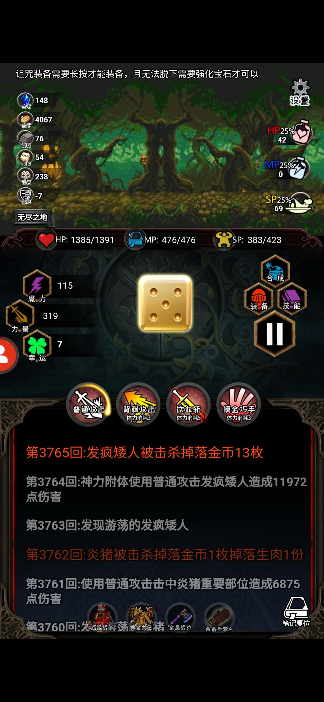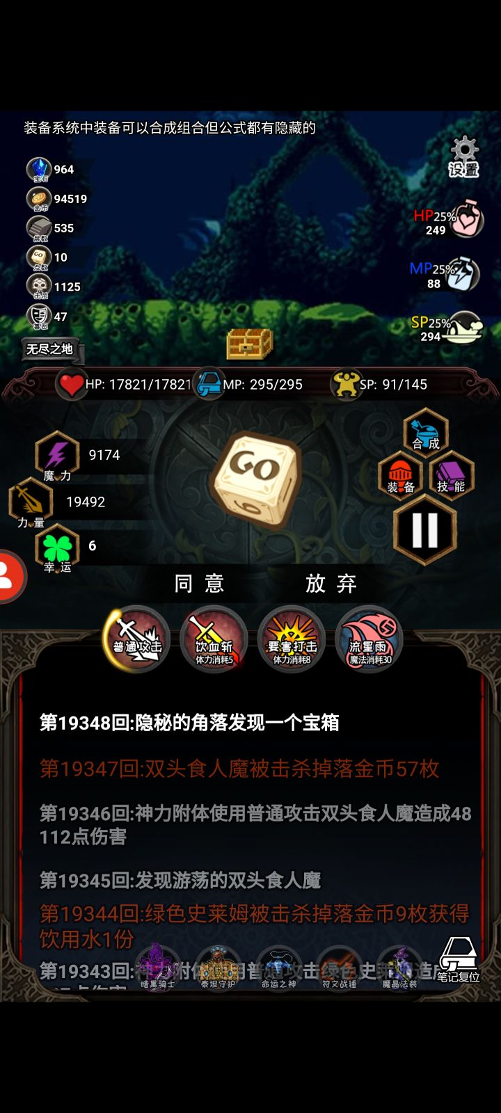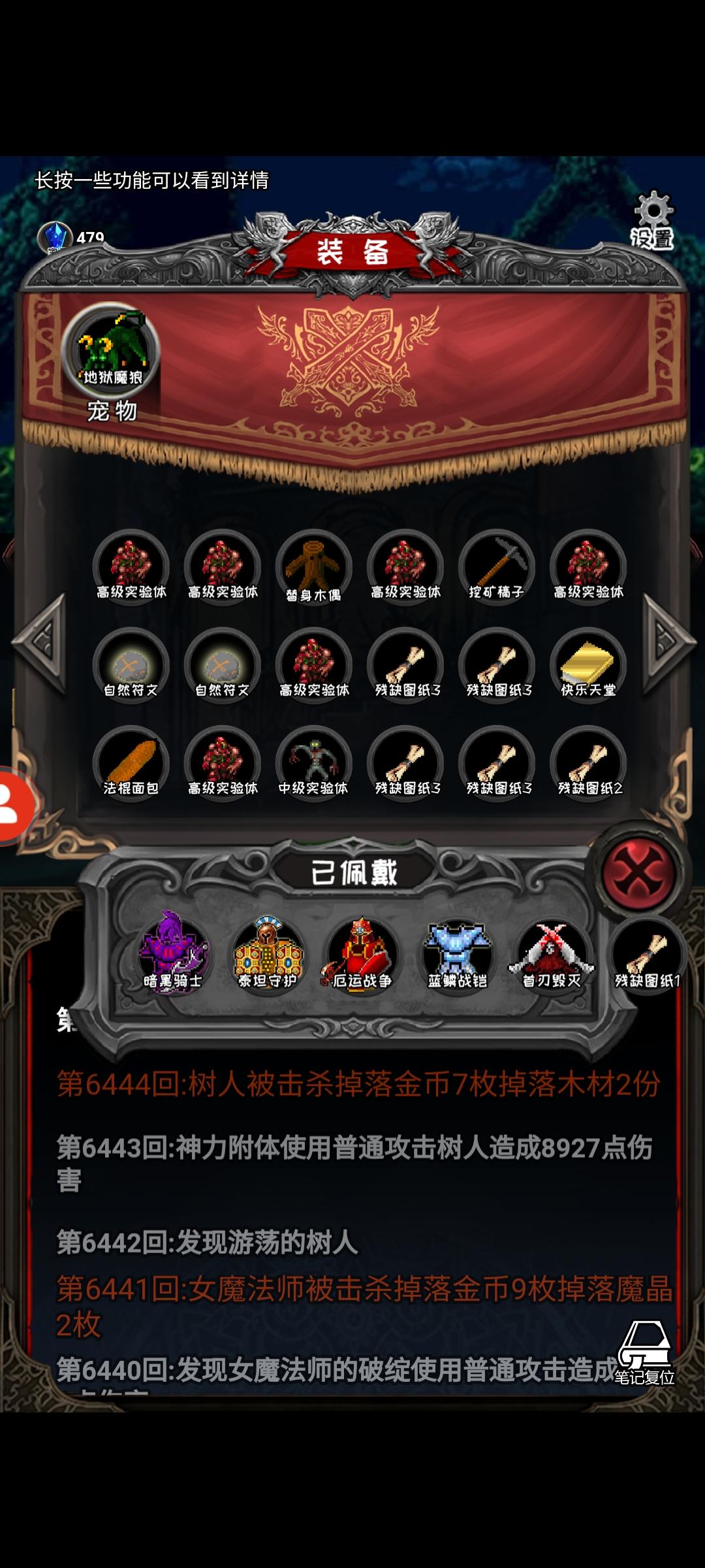 目前239层,什么东西都不出了,钱没用,装备卖不出去,地图永远只给1。不知道我现在这么多装备有什么用,老法师也是,天天给我刷法术,我看着技能三页的同一个技能太头疼了。关键是我也不知道他后面还有没有额外剧情,不敢点拒绝。最关键的是,到后面挂机的时候,还经常还给你刷点水资源之类的没什么用的东西来打断你的挂机,现在我这水、木头只能拿来合成食物,其他的什么用都没有,挺烦的。建议作者在后面可以开点特殊