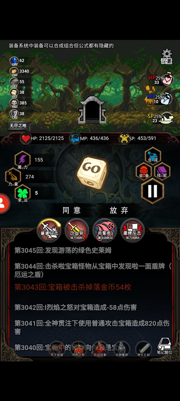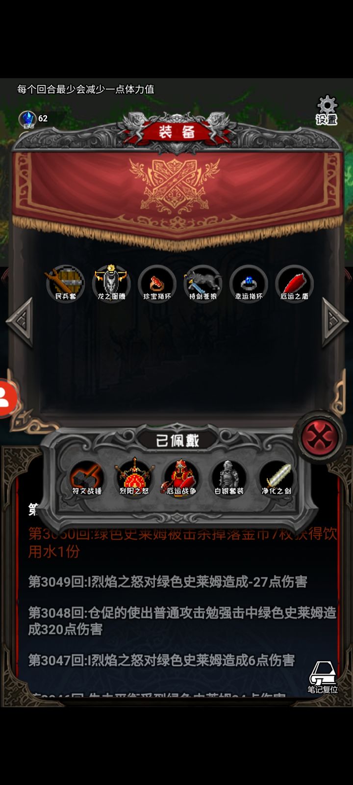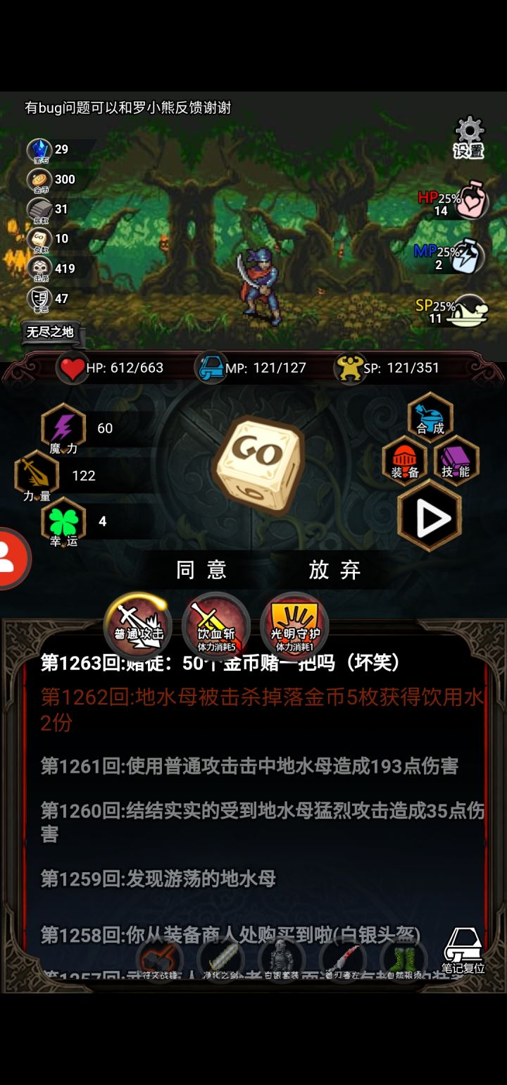 又出bug了,继续后,属性,装备,除了幸运全初始化了,怪还是11层的属性。